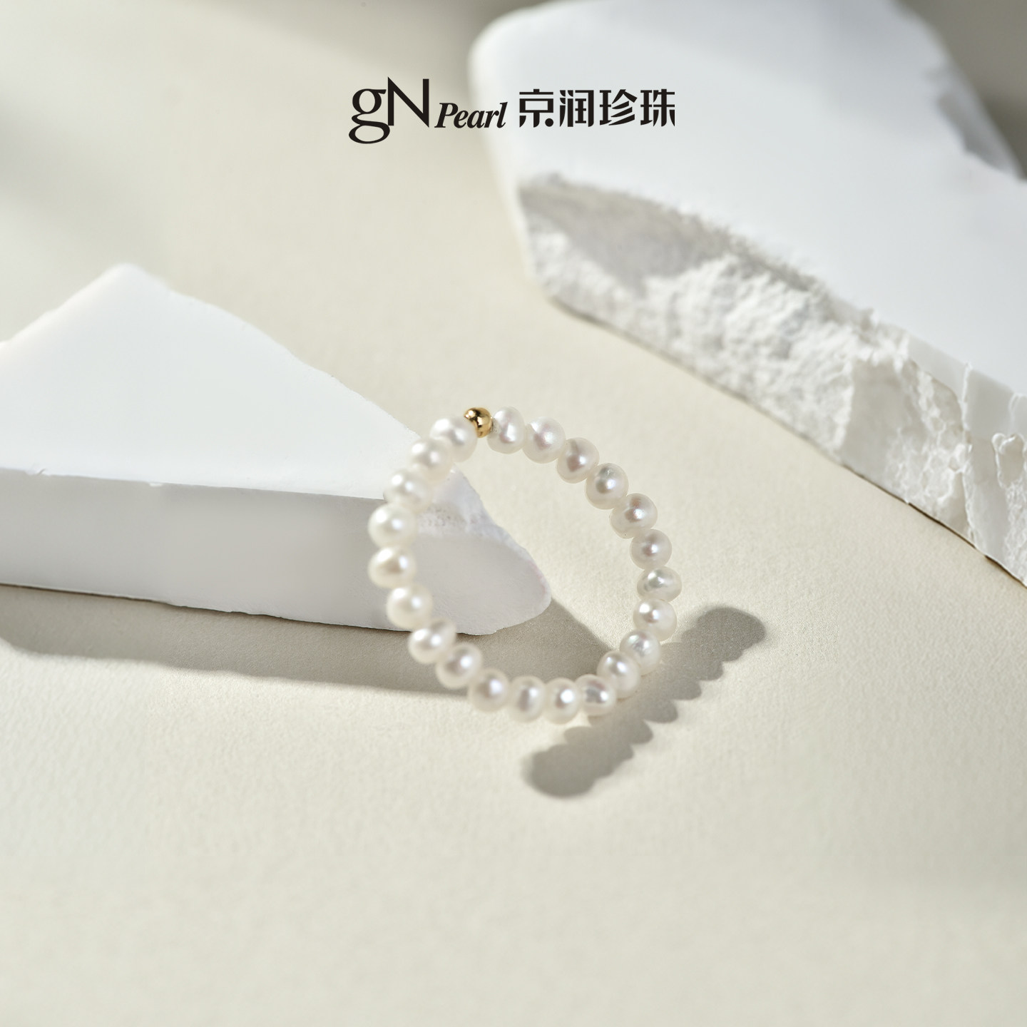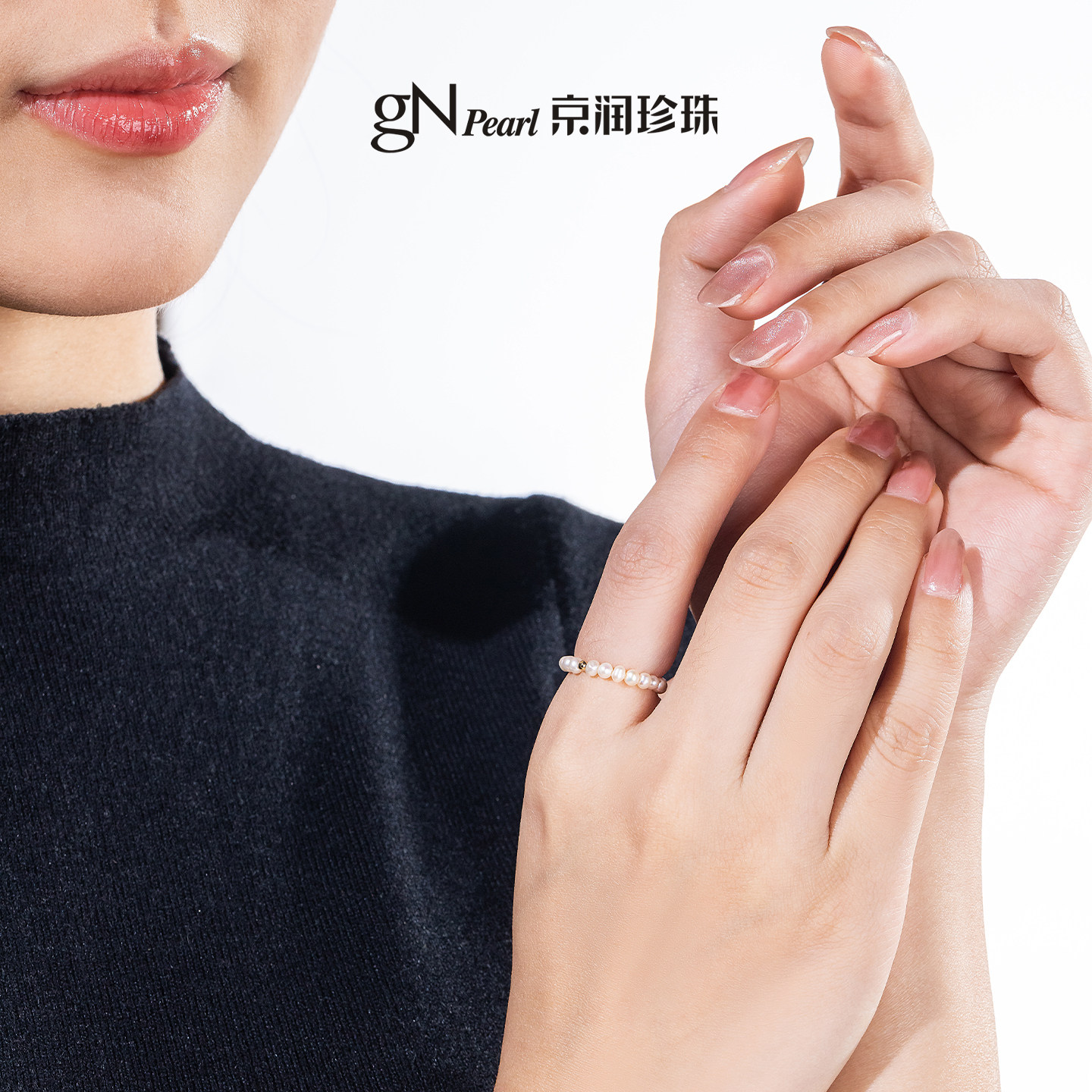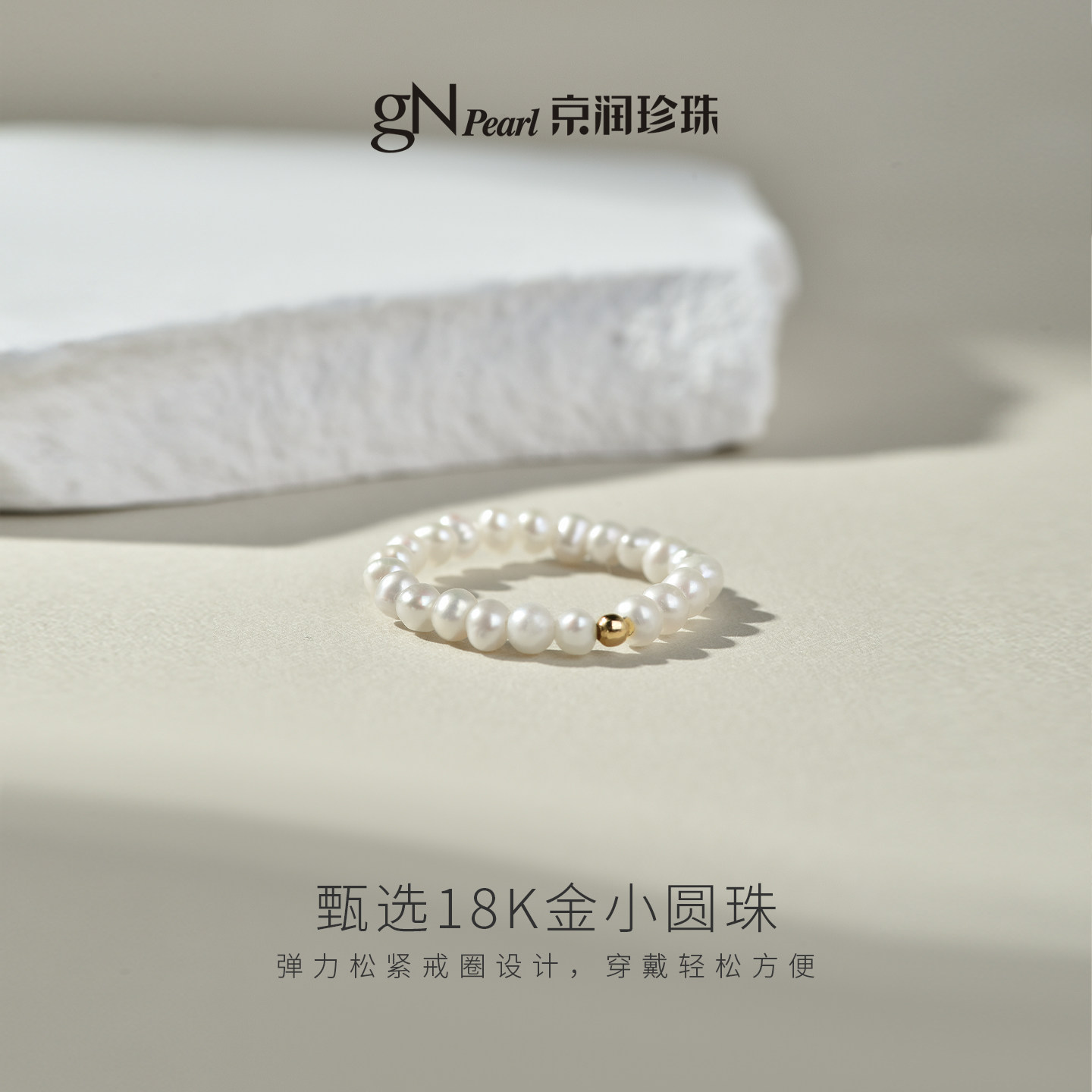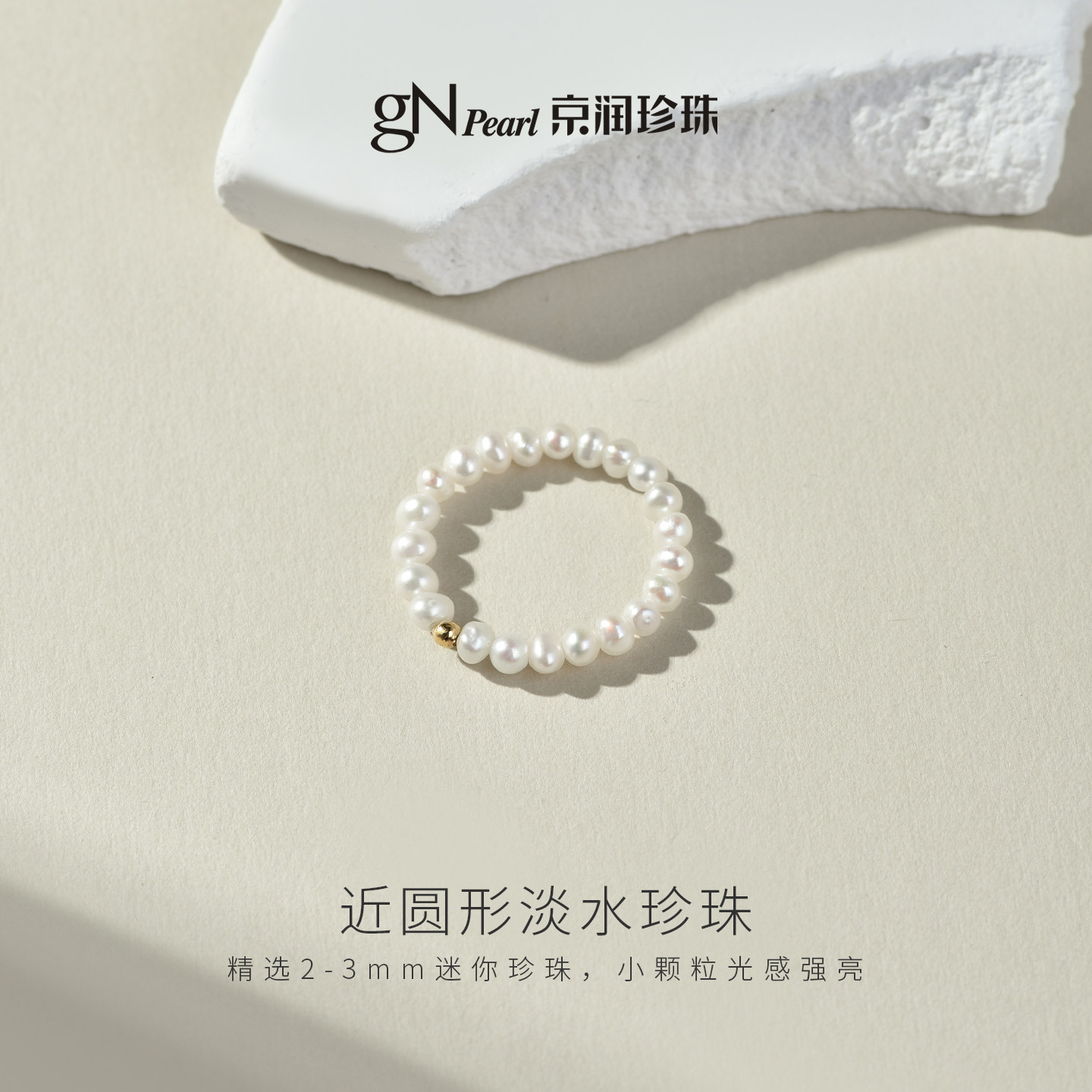 京润珍珠馨念18K金白色淡水珍珠戒指2.0 3.0mm近圆形轻奢礼物女P