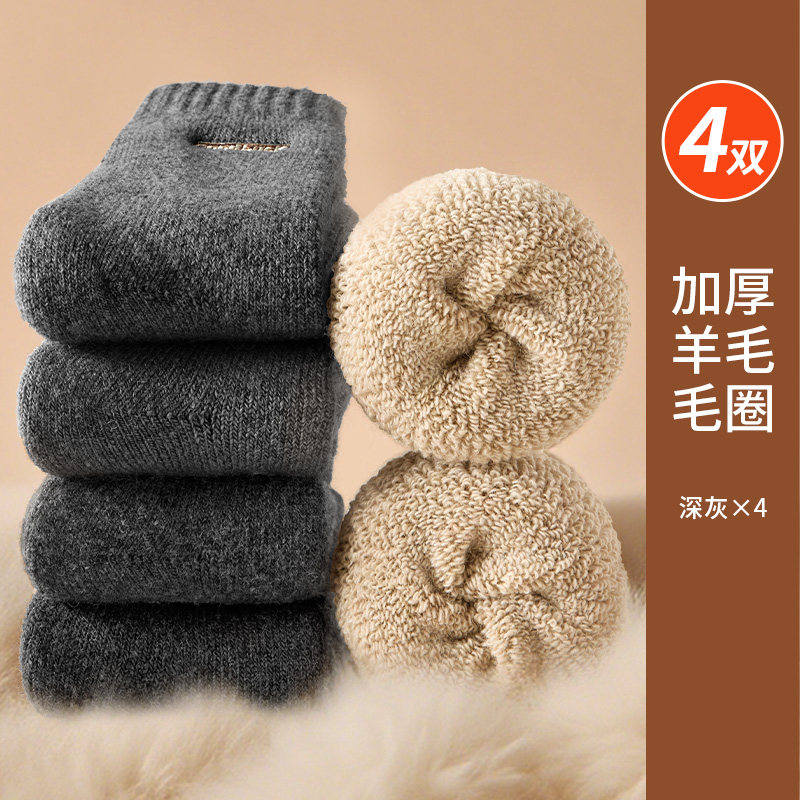 雅鹿中筒袜男士 抑菌防臭吸汗透气保暖袜 毛圈加绒加厚长筒袜子冬季