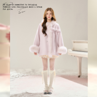 25新定染色100%全羊毛真狐狸毛超好看毛呢外套 雪国千金 BLUE