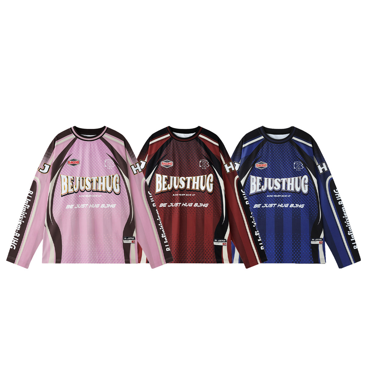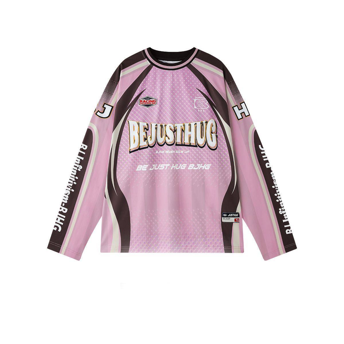 上衣美式 潮流赛车服运动长袖 复古T恤男女ins 新款 UNXU潮牌2025秋季