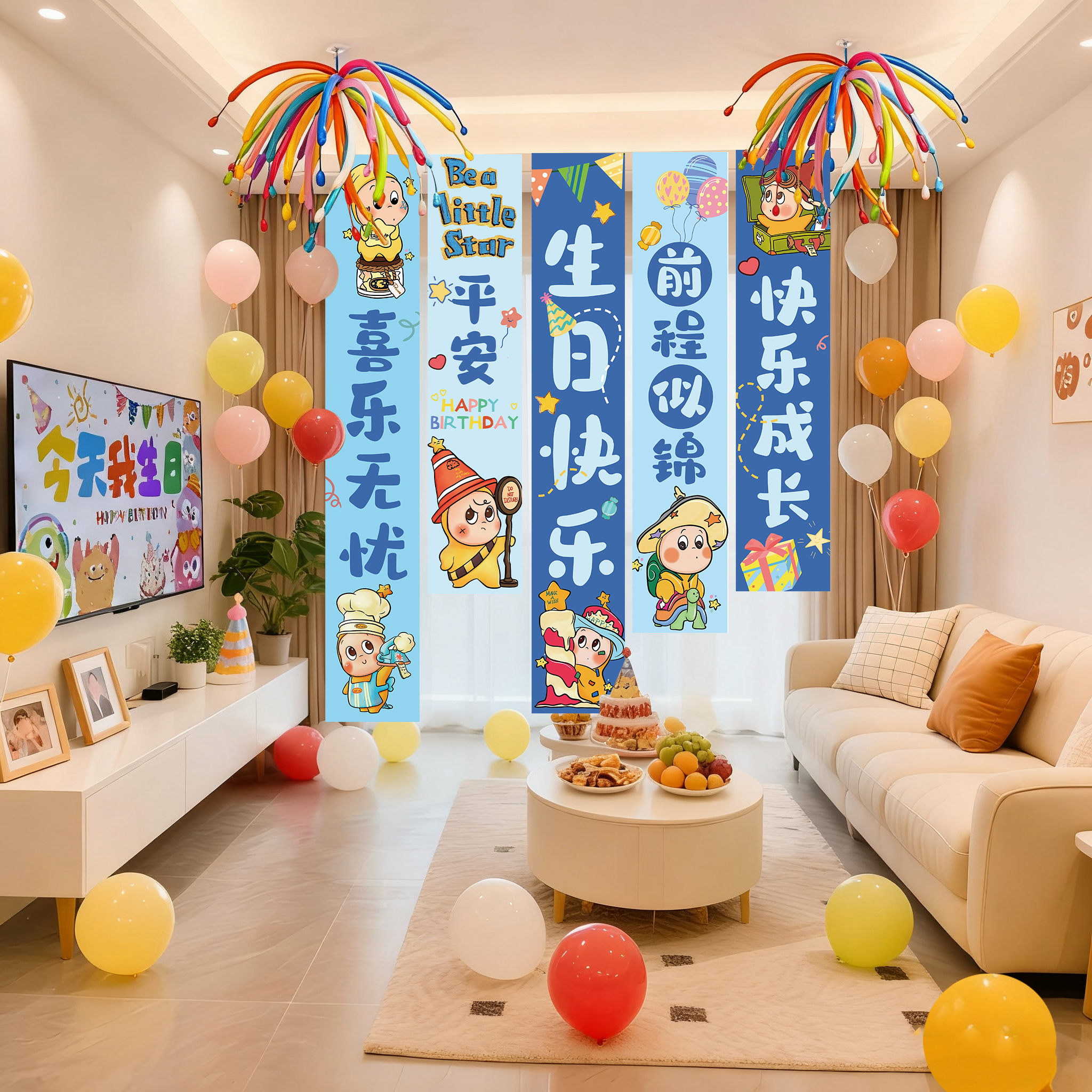 男女孩生日派对活动星星人主题条幅背景装 饰挂布置儿童拍照道具