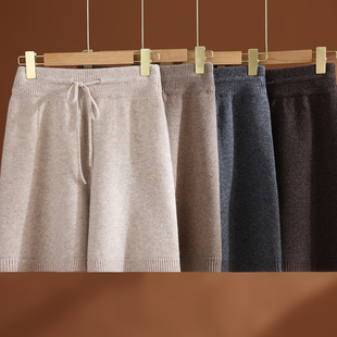 女高腰百搭简约休闲阔腿裤 五分裤 外穿 100纯羊毛针织短裤 秋冬新款