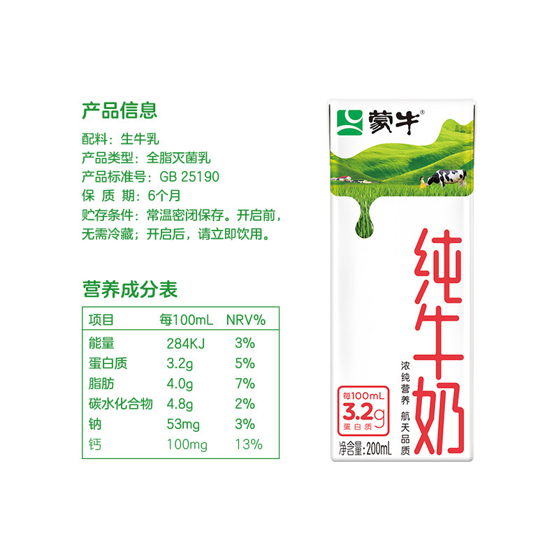 6盒3.2g蛋白 认养一头牛全脂纯牛奶200ml 20点抢