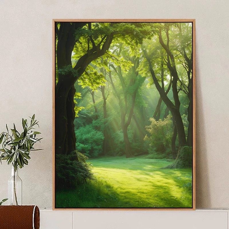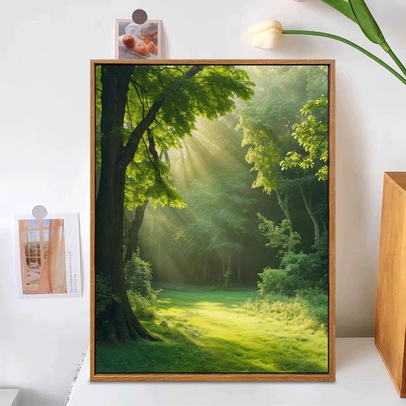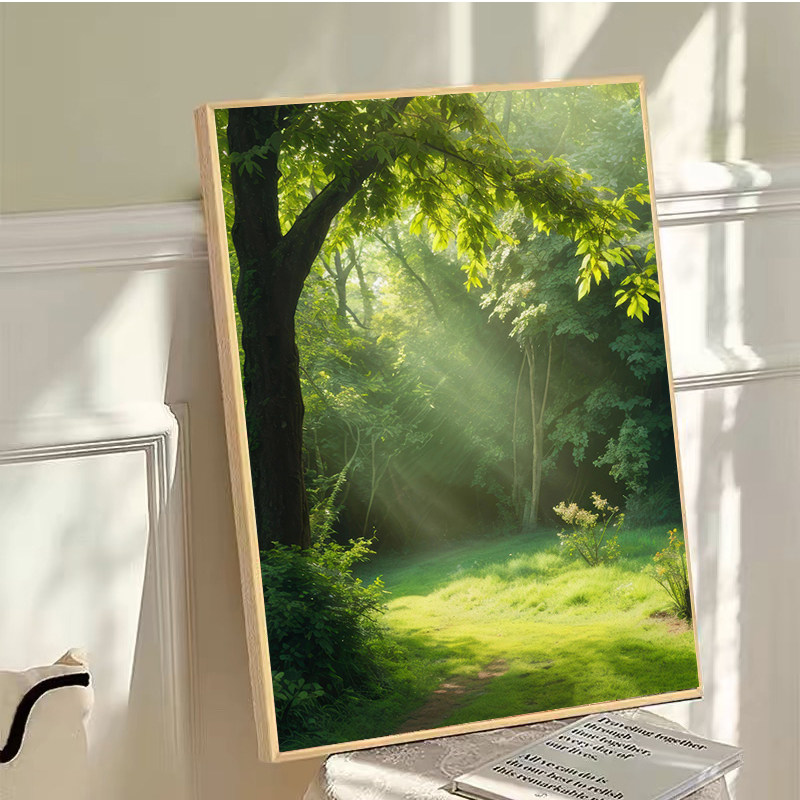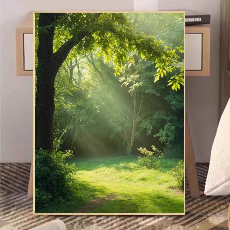 森林秘境装 饰画成品仿油画风景绿色唯美清新治愈系卧室客厅摆挂画