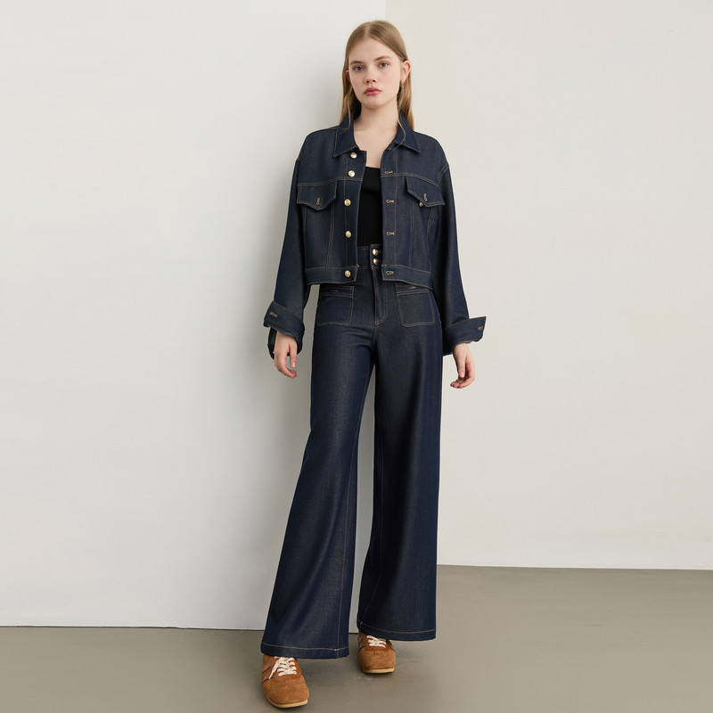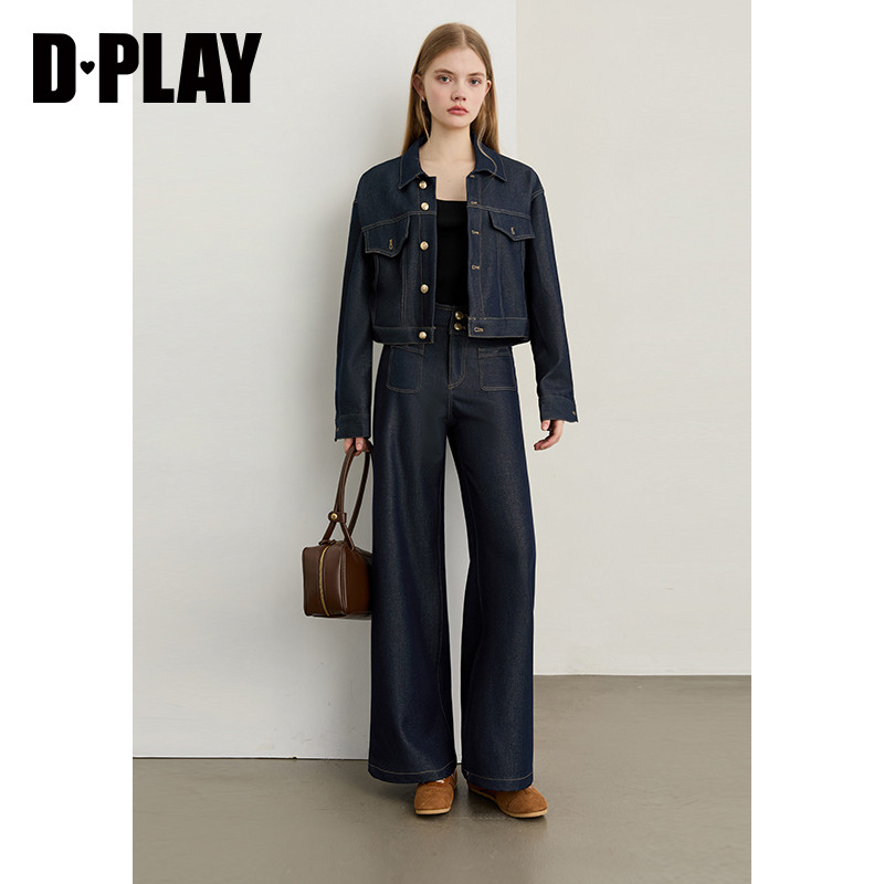 显瘦百搭长裤 新款 女2025秋季 现货复古水洗立体剪裁口袋直筒牛仔裤