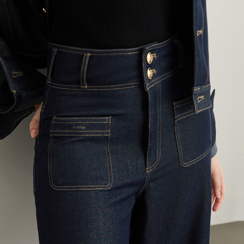 磨毛 显瘦裤 Navigare意大利小帆船蓝色阔腿牛仔裤 新款 子 女秋冬季