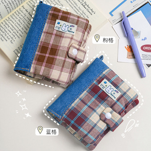 蓝格条纹布艺m5手账本活页高颜值ins风可拆卸便携日记事本笔记本