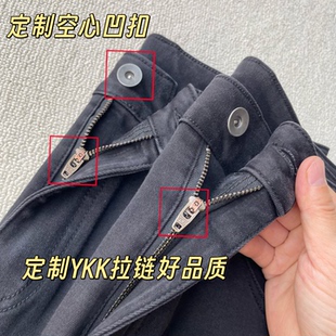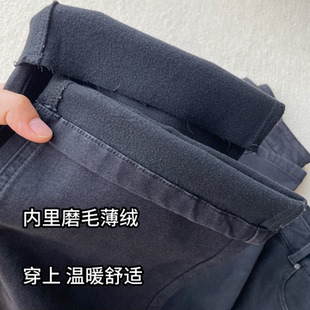 女冬小个子加绒加厚直筒烟管裤 百家好黑色九分牛仔裤 House Basic