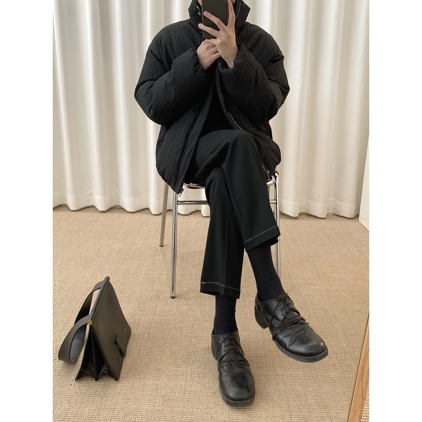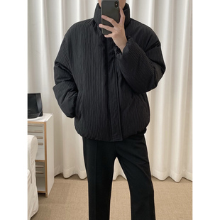 宽松休闲百搭保暖棉衣外套 韩版 阿茶与阿古黑色压纹棉服男款 冬季
