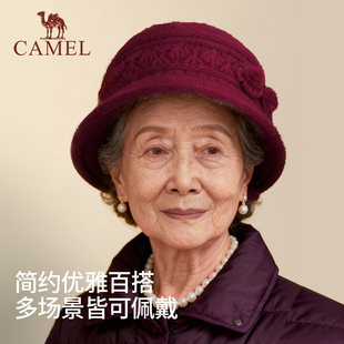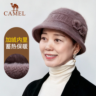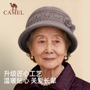 骆驼中老年人保暖帽子妈妈帽冬季 兔毛毛线帽老太太加绒棉帽奶奶帽
