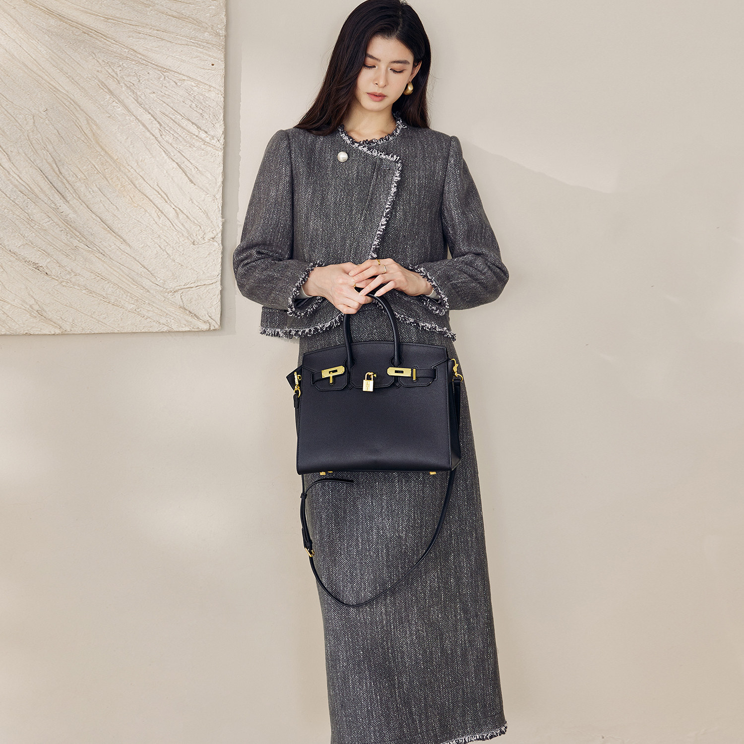 罗衣气质小香风套装 通勤灰色短外套半身裙两件套套裙13072 女冬季