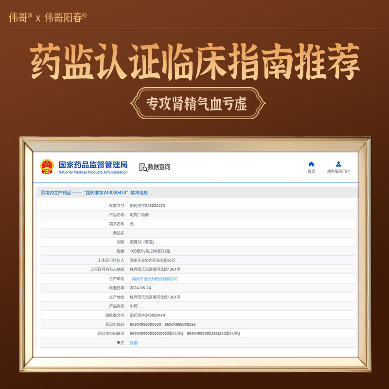 伟哥龟鹿二仙膏正品 温肾益精补气养血肝肾亏虚腰膝酸软补肾固健脾