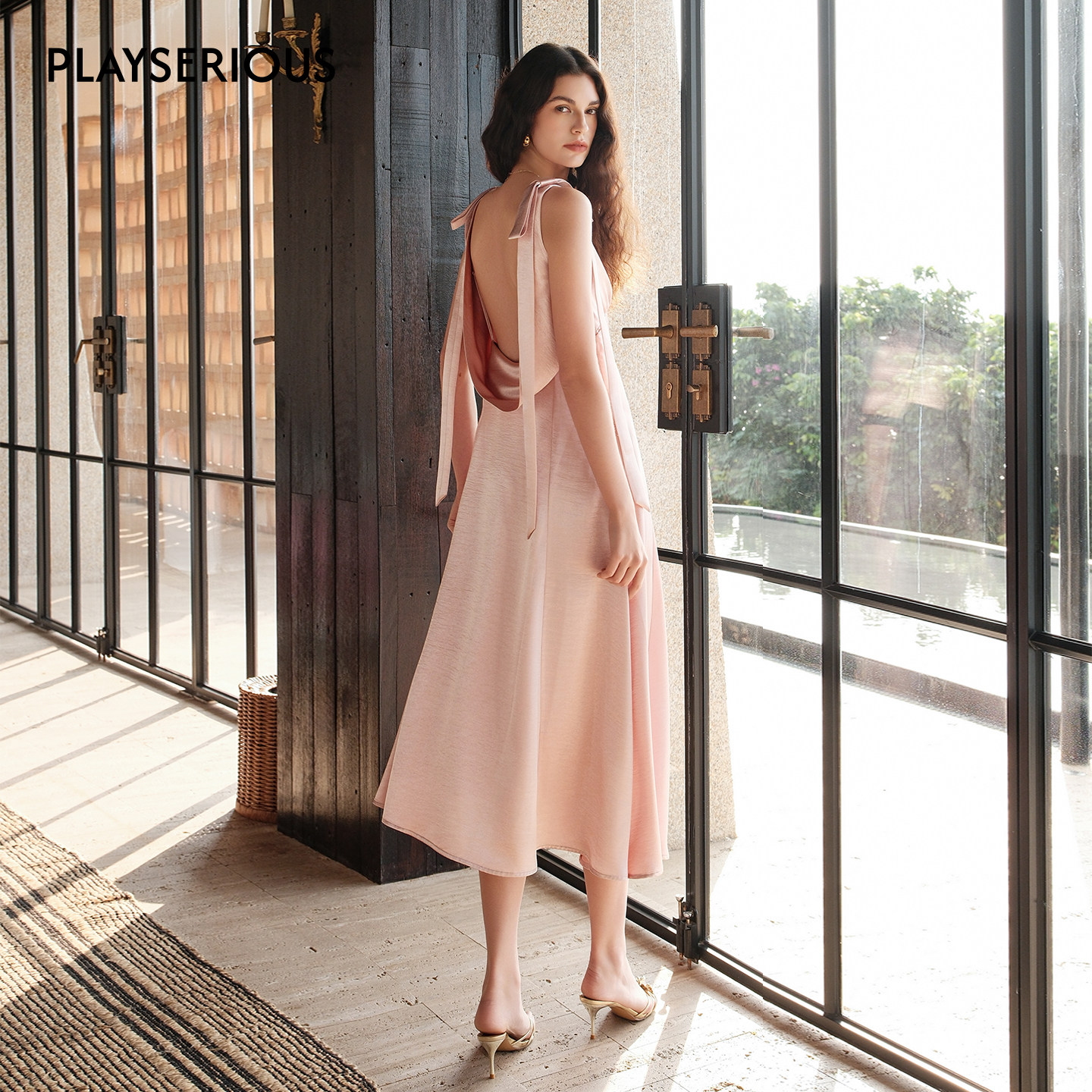 V领镂空挂脖连衣裙女法式 Sheer 法式 2026春夏新款 气质长裙 Luck