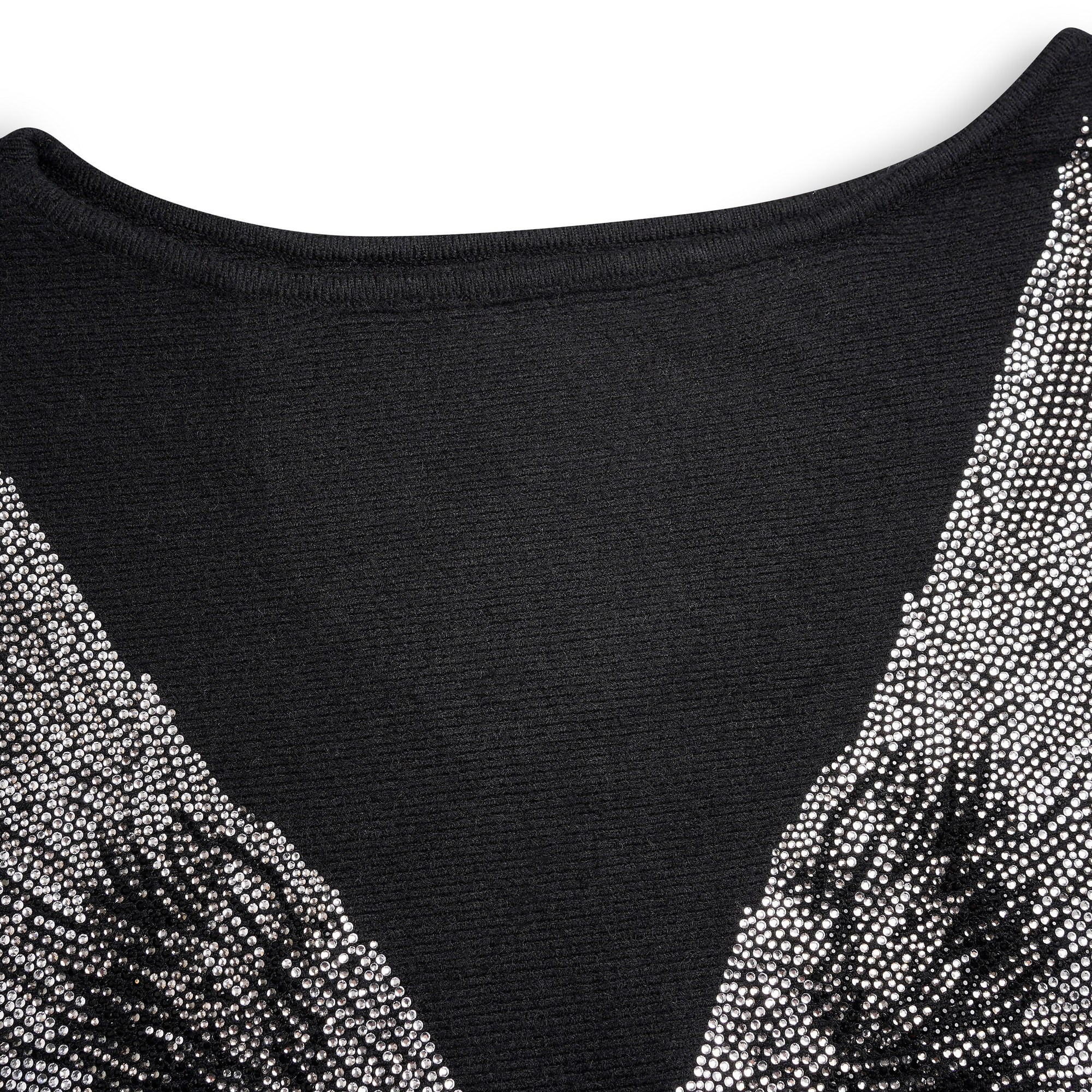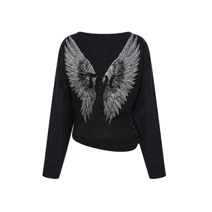 T75D09E1203 新款 TCH轻奢烫钻翅膀黑色收腰百搭针织衫 女2025冬季