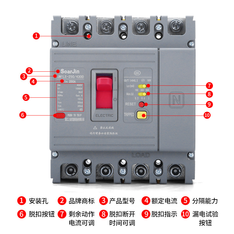 225A 200A 漏电保护器三相四线380v空气开关漏保断路器100A 125A
