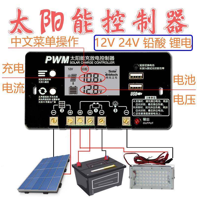 网红款 英文显示太阳能控制器12V24V30A充电管理控制器 中文