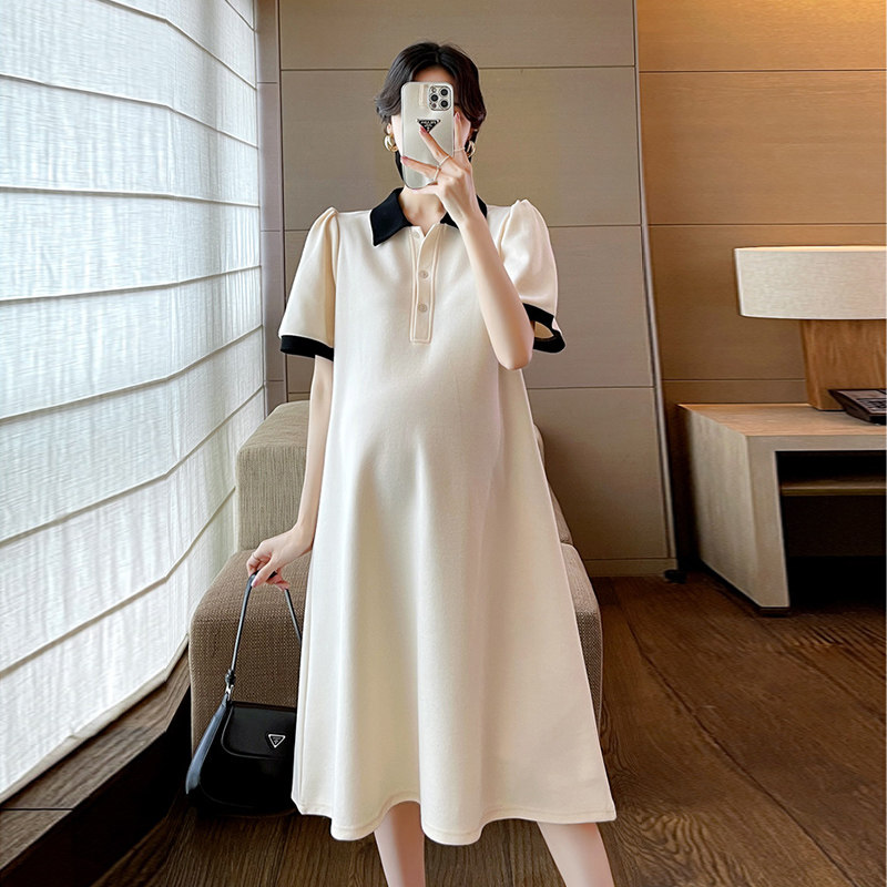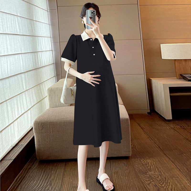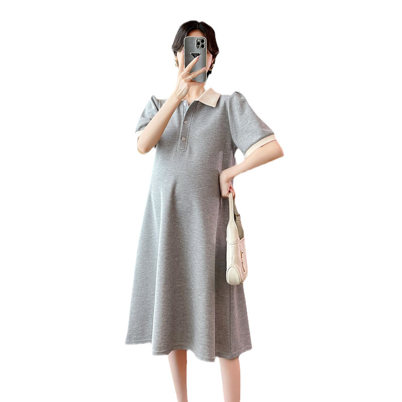 宽松翻领上衣短袖 孕妇夏装 洋气孕妇装 时尚 夏天孕妇裙 连衣裙中长款