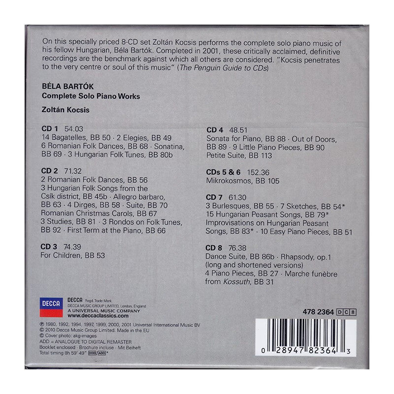 自营 古典音乐 正版 8CD 4782364唱片 巴托克钢琴作品独奏集
