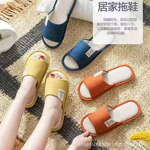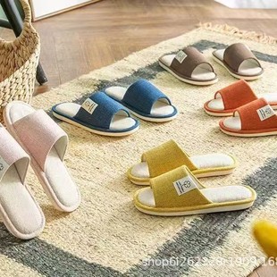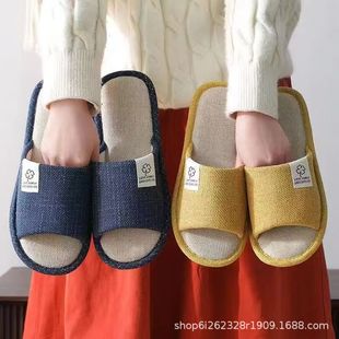 情侣布艺地板拖男夏季 亚麻室内棉麻家居家用四季 防滑 女春秋季 拖鞋