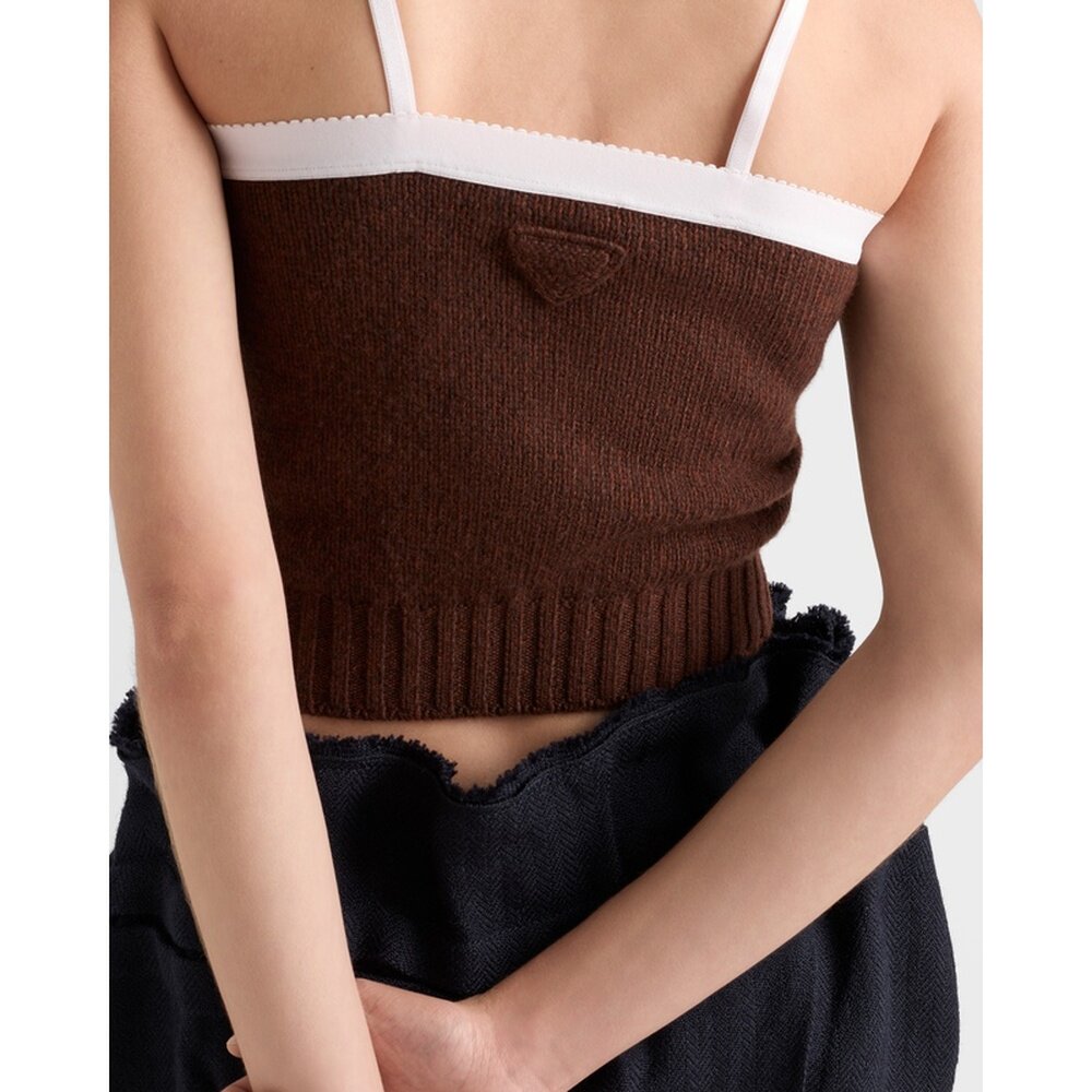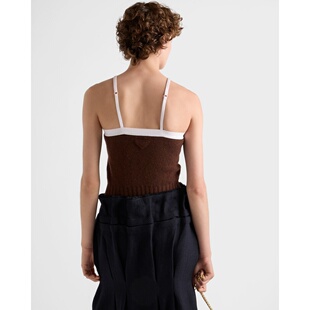 自营欧洲直邮Prada普拉达 女士深棕色羊毛可调节肩带背心吊带