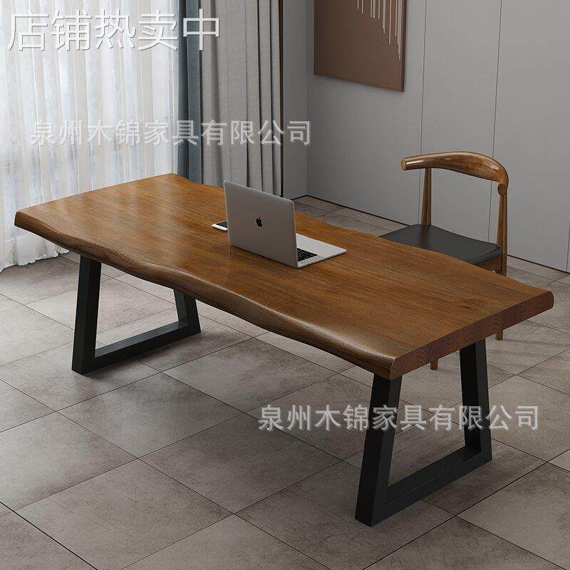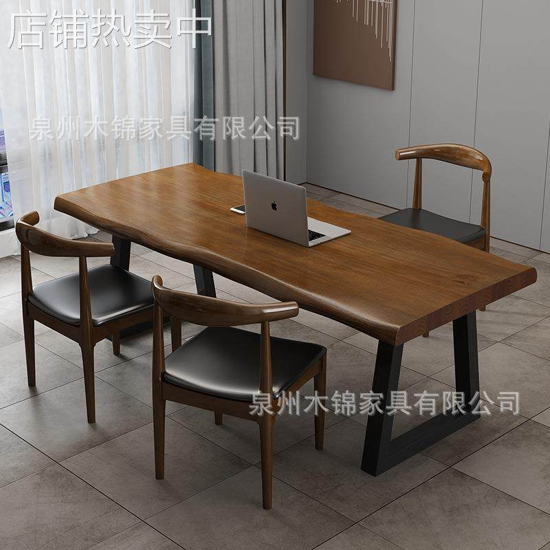 美式 实木书桌现代简约办公室会议桌公司接待会客办公桌原木大板桌