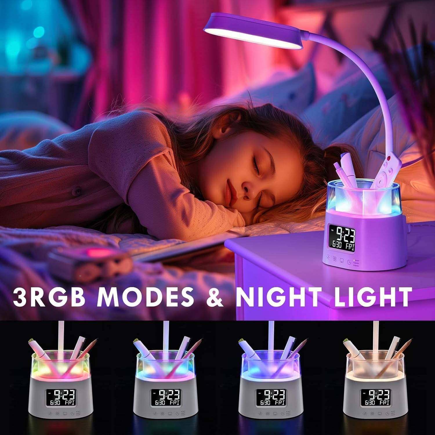 RB笔筒台灯闹钟多功灯能护眼学生G学习桌体面时NVJ钟一定时夜灯