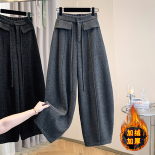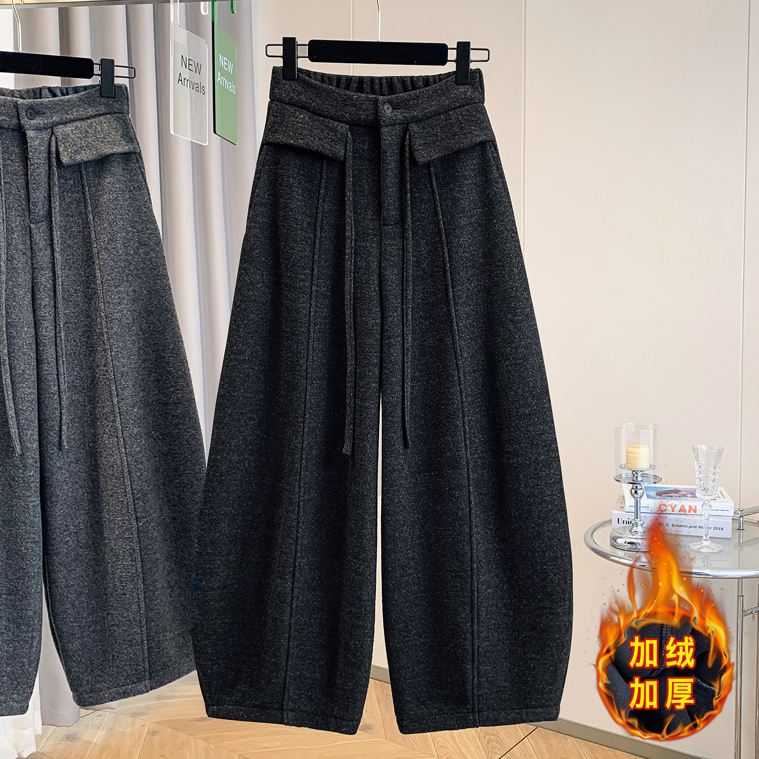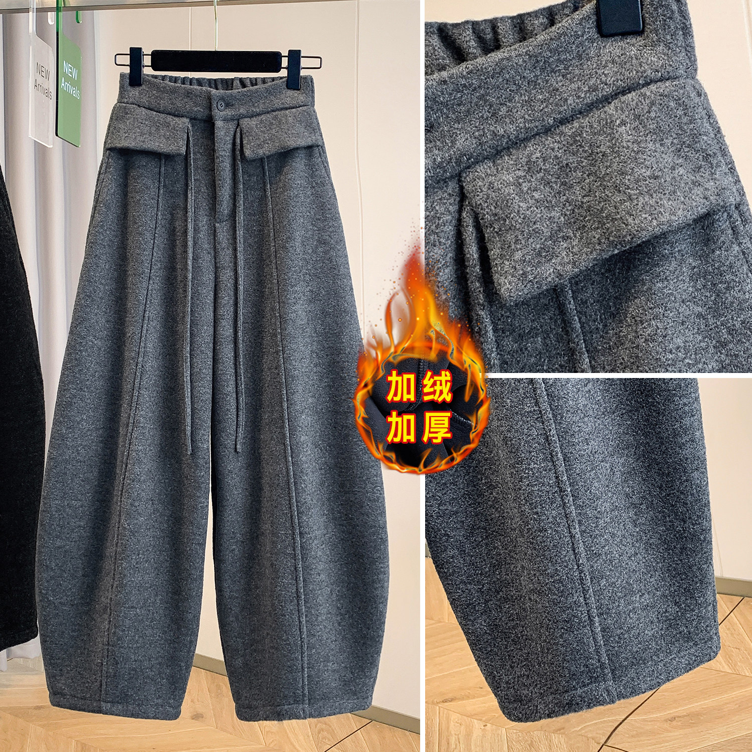 休闲洋气百搭裤 时尚 女 设计感西装 实拍秋冬加绒加厚毛呢气球裤