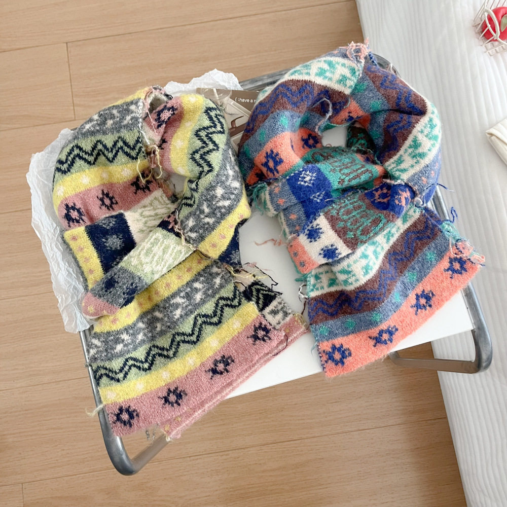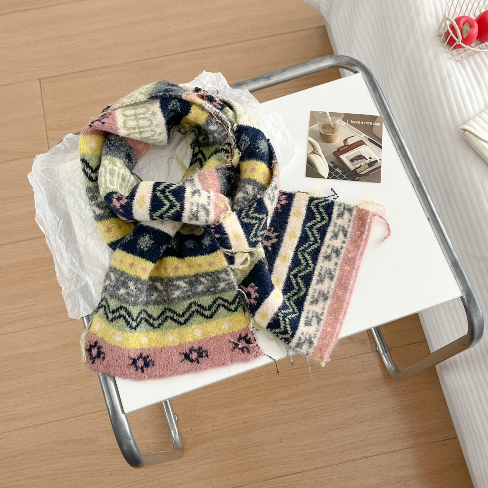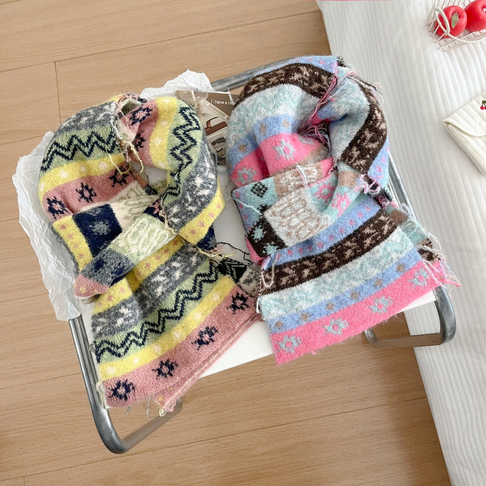 费尔岛风毛须氛围感围巾女秋冬季 lady 保暖百搭针织护颈围脖scarf