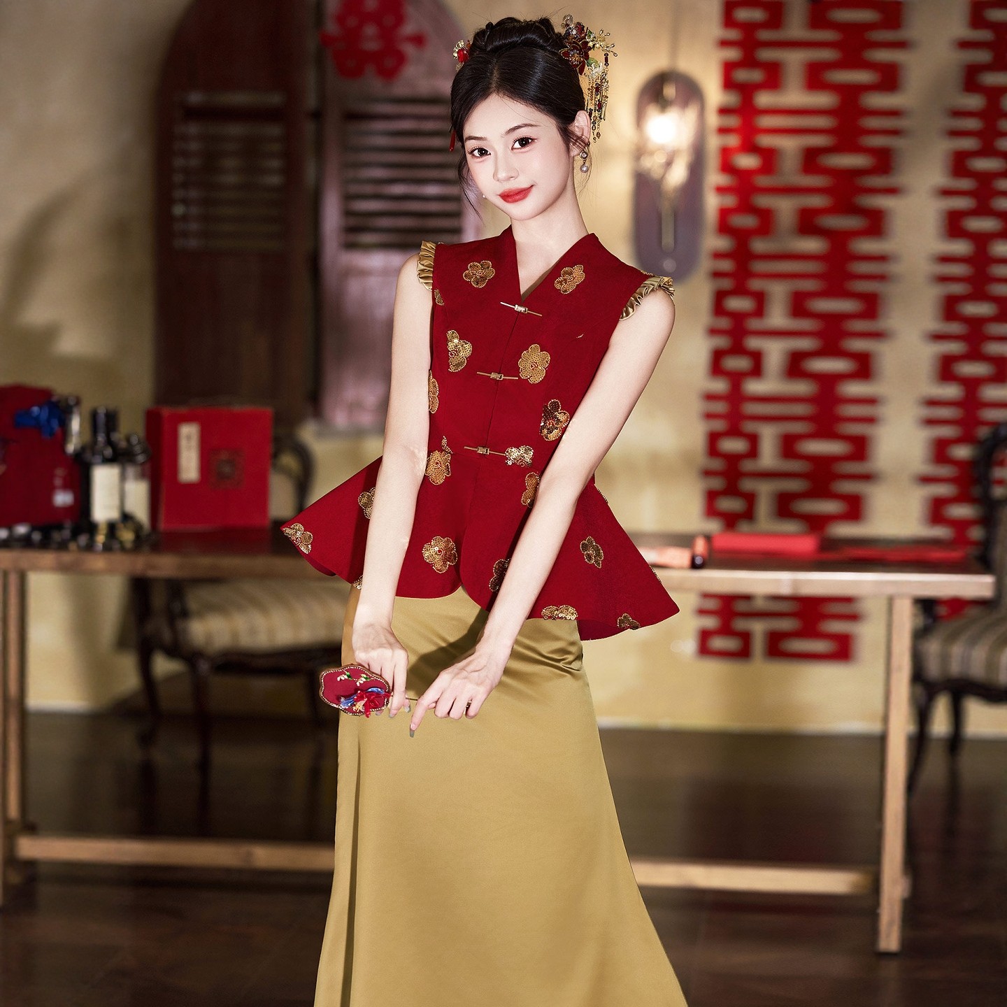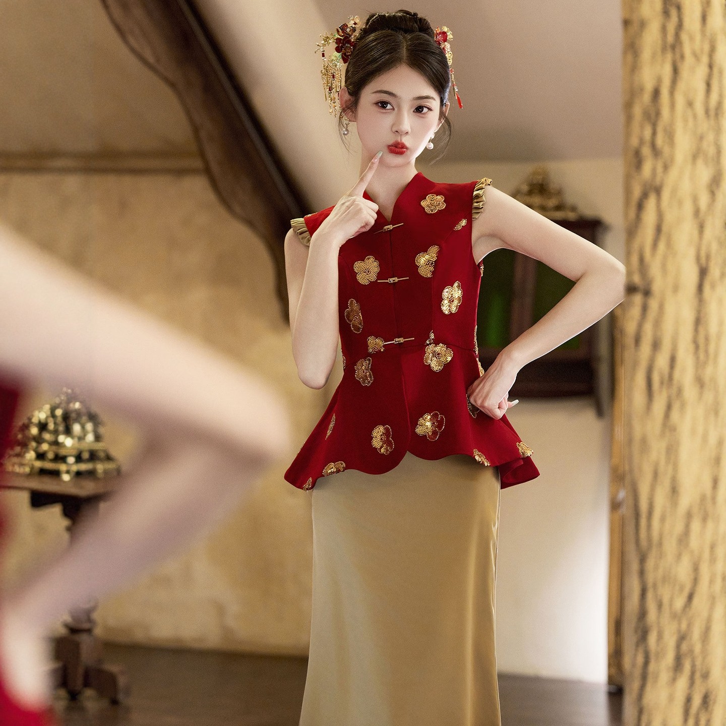 2025新款 红色订婚旗袍女秋冬装 结婚敬酒服加绒加厚 璎珞 故双栖