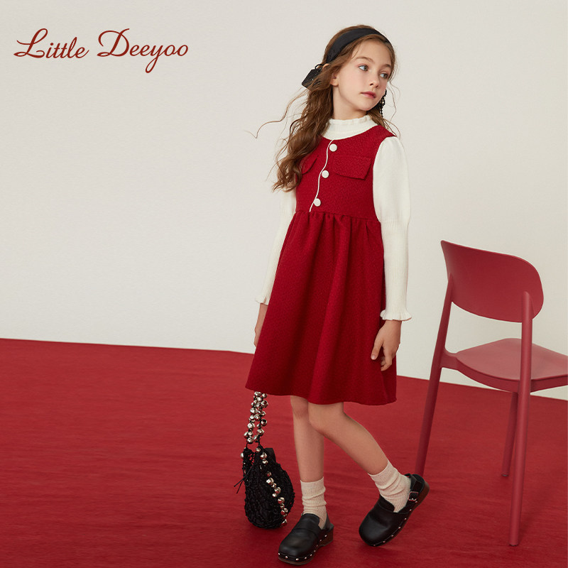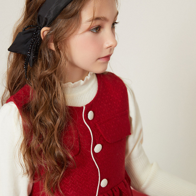 背心裙冬季 女童红色连衣裙2025套裙新年装 裙子X346620 CC家CC