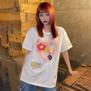 饰宽松短袖 甜酷风设计感立体装 T恤女清仓百搭上衣新款 清仓秒杀