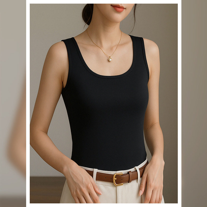 上衣打底衫 工字型无袖 外穿内搭大码 黑色纯棉小吊带背心女春夏秋季