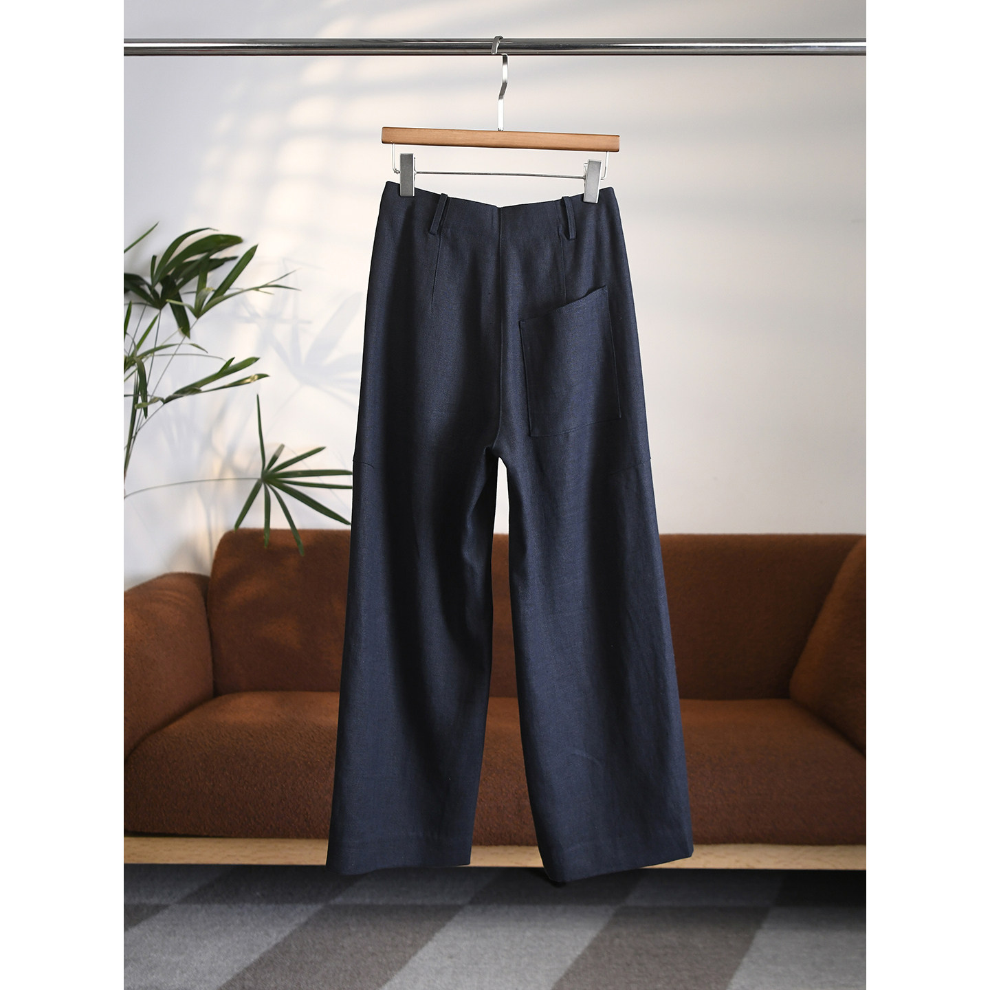 W2023 进口法国雨露麻立裁斜缝线阔腿弯刀九分休闲裤 颖颖家