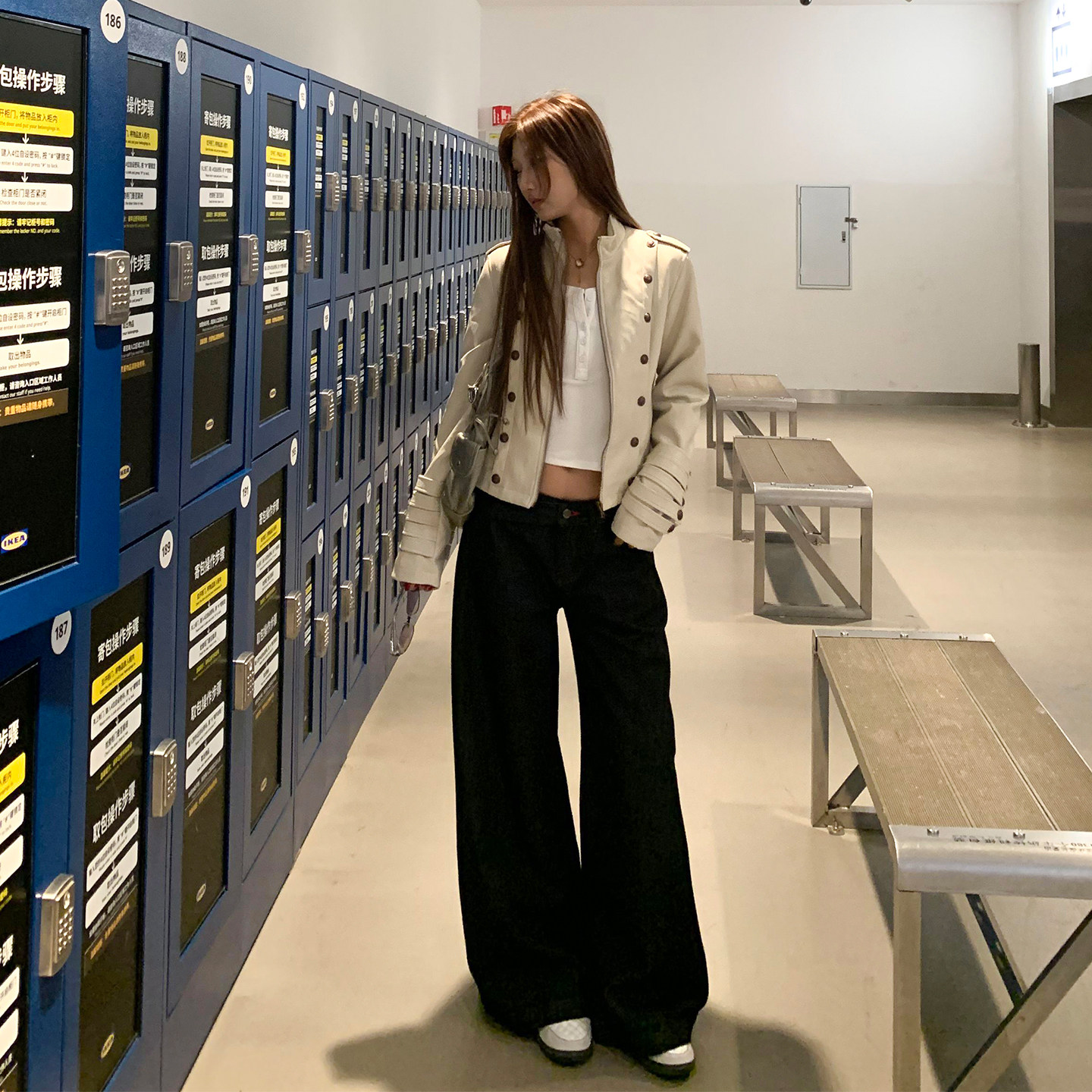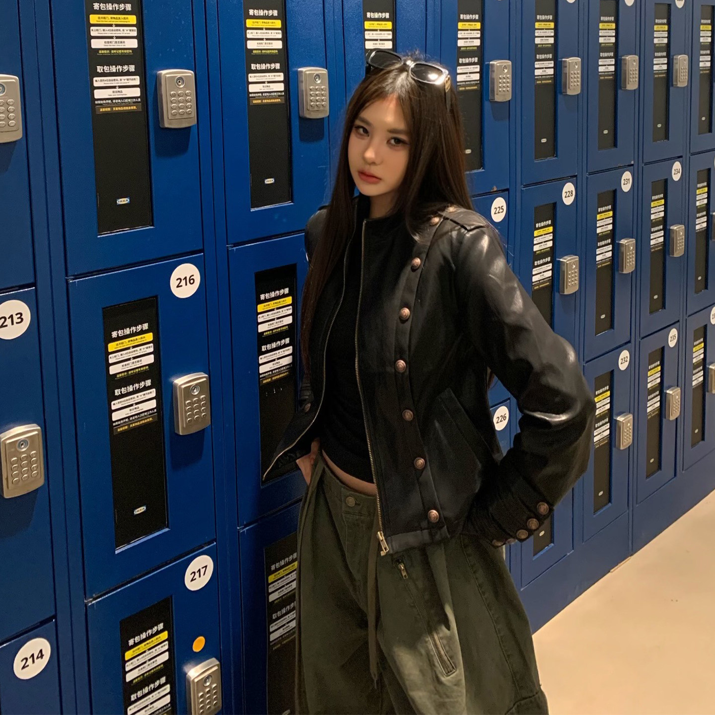 机车夹克 高级感休闲显瘦短款 饭饭又饿了美式 纽扣皮衣外套女春秋款