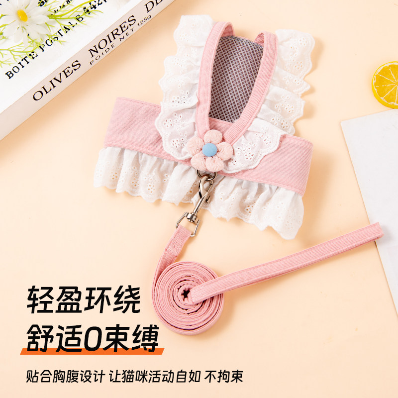 狗狗牵引绳小型犬蕾丝花边胸背裙甜美薄款 幼犬外出专用衣服春夏季