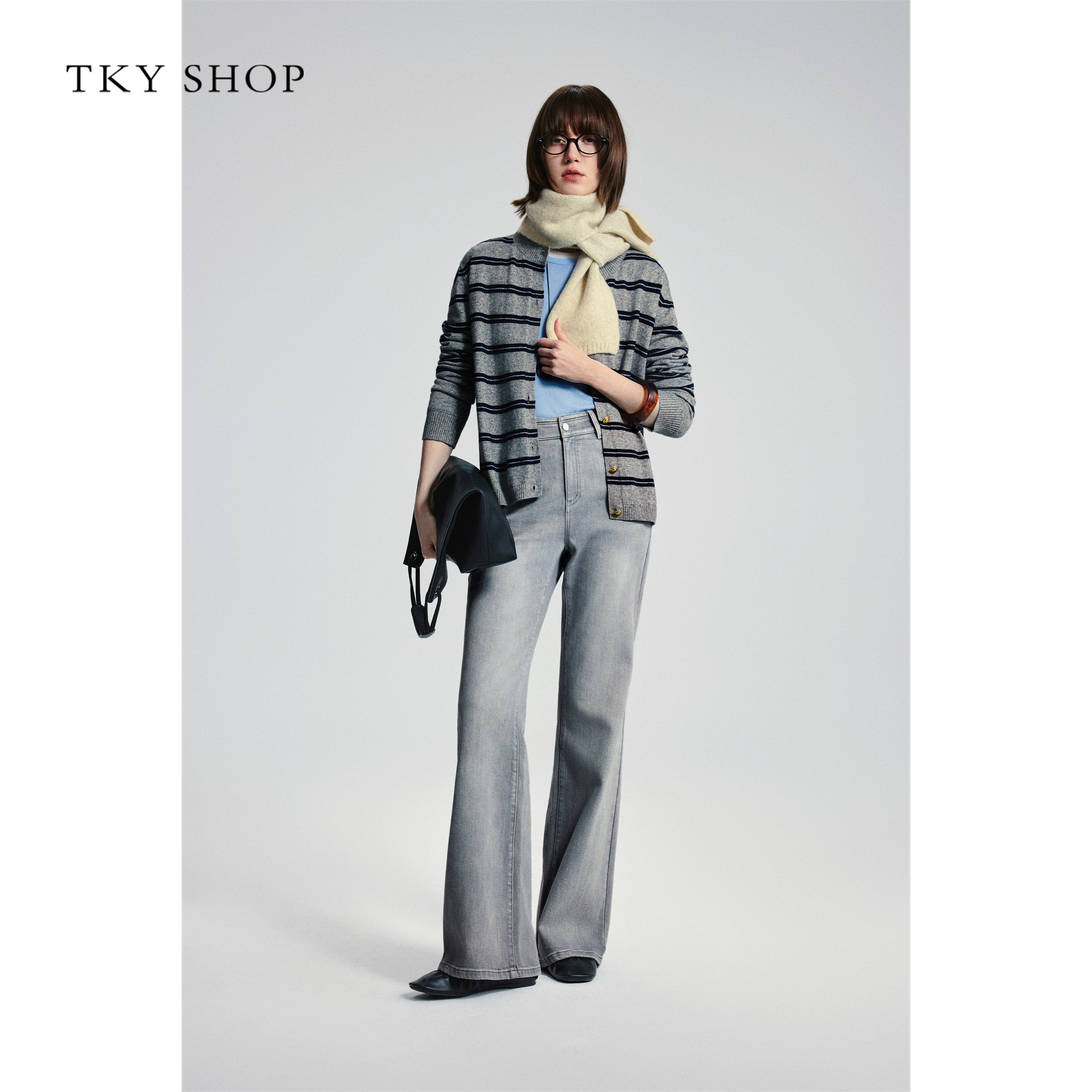2026春新款 SHOP高腰阔腿微喇叭牛仔裤 TKY 10J1OA02A046 商场同款