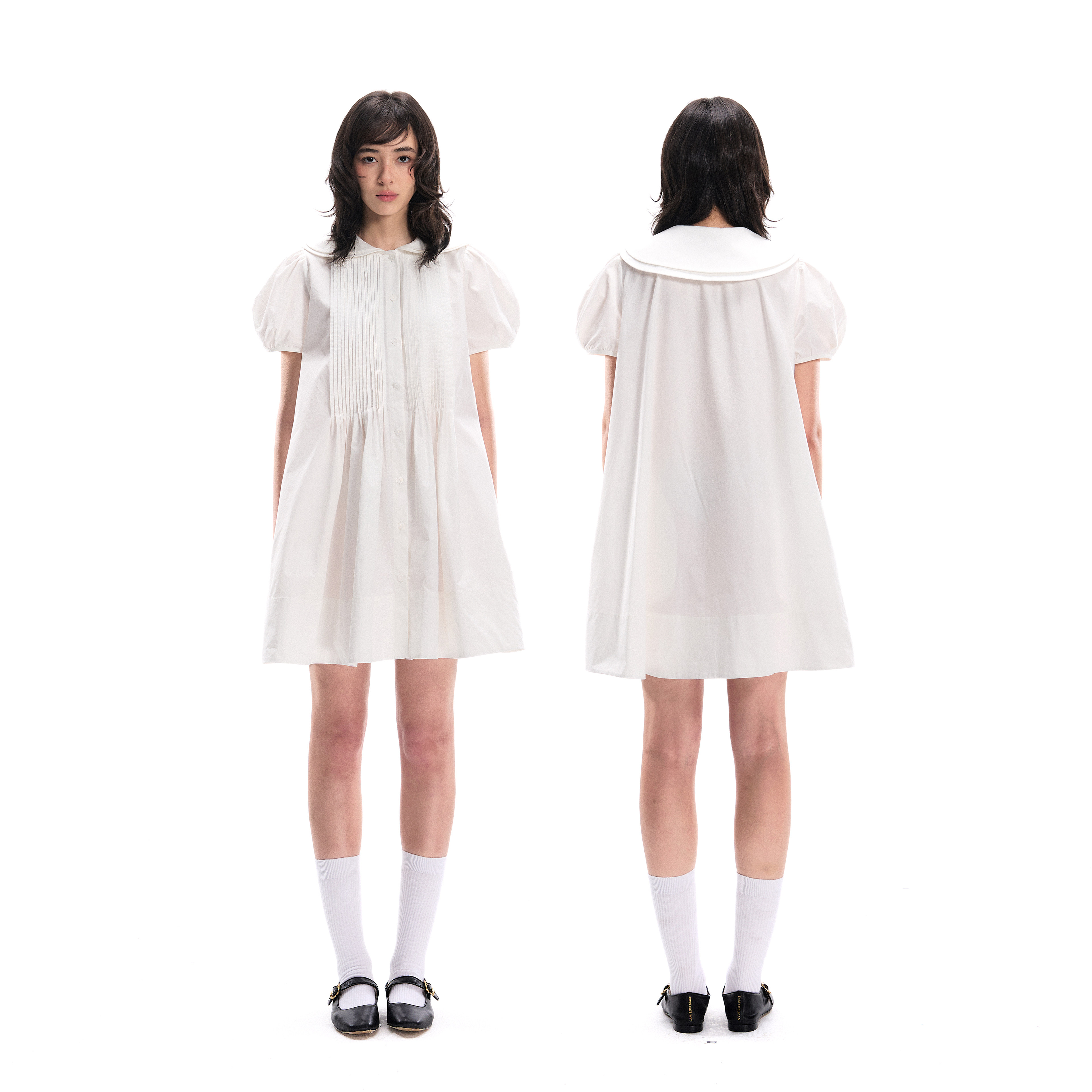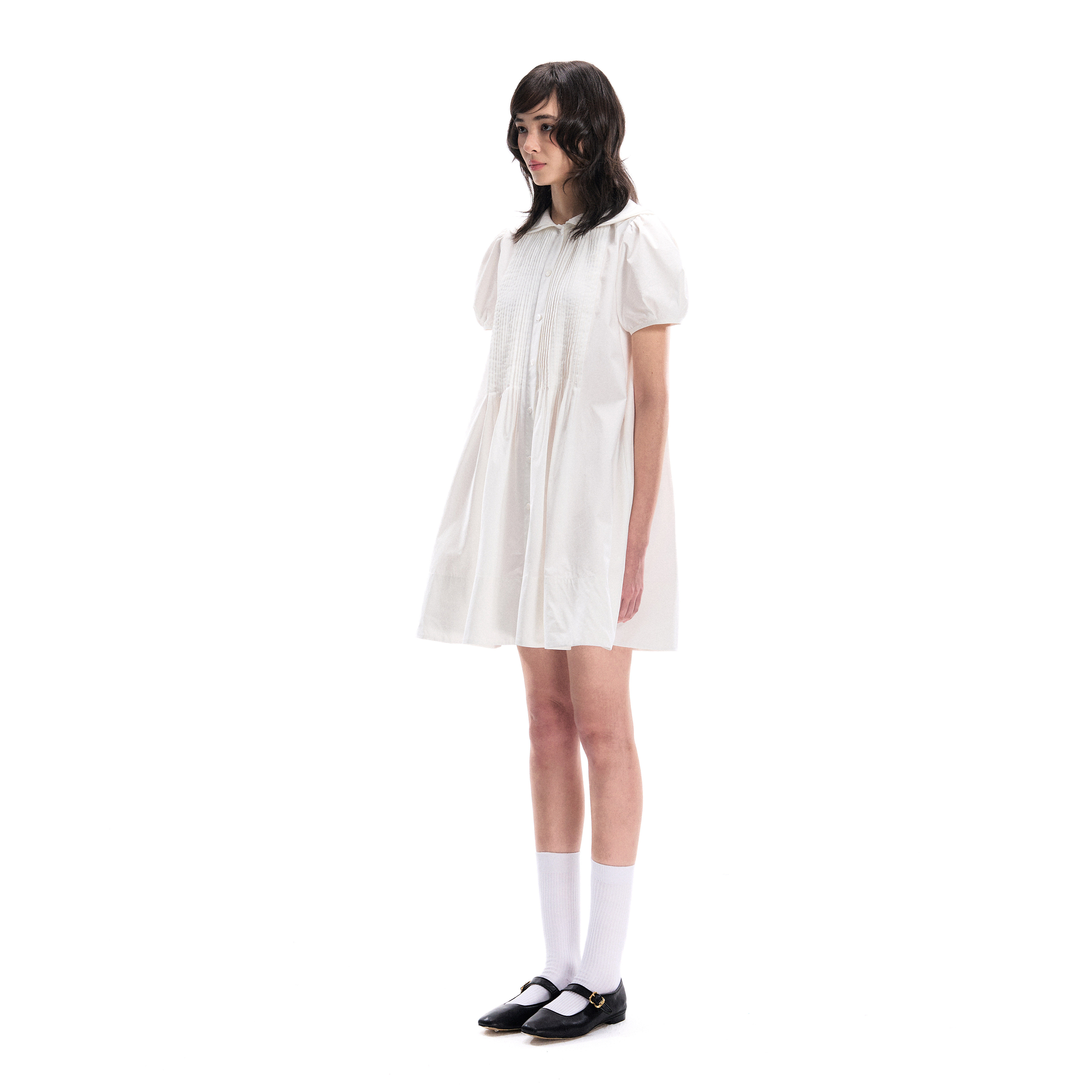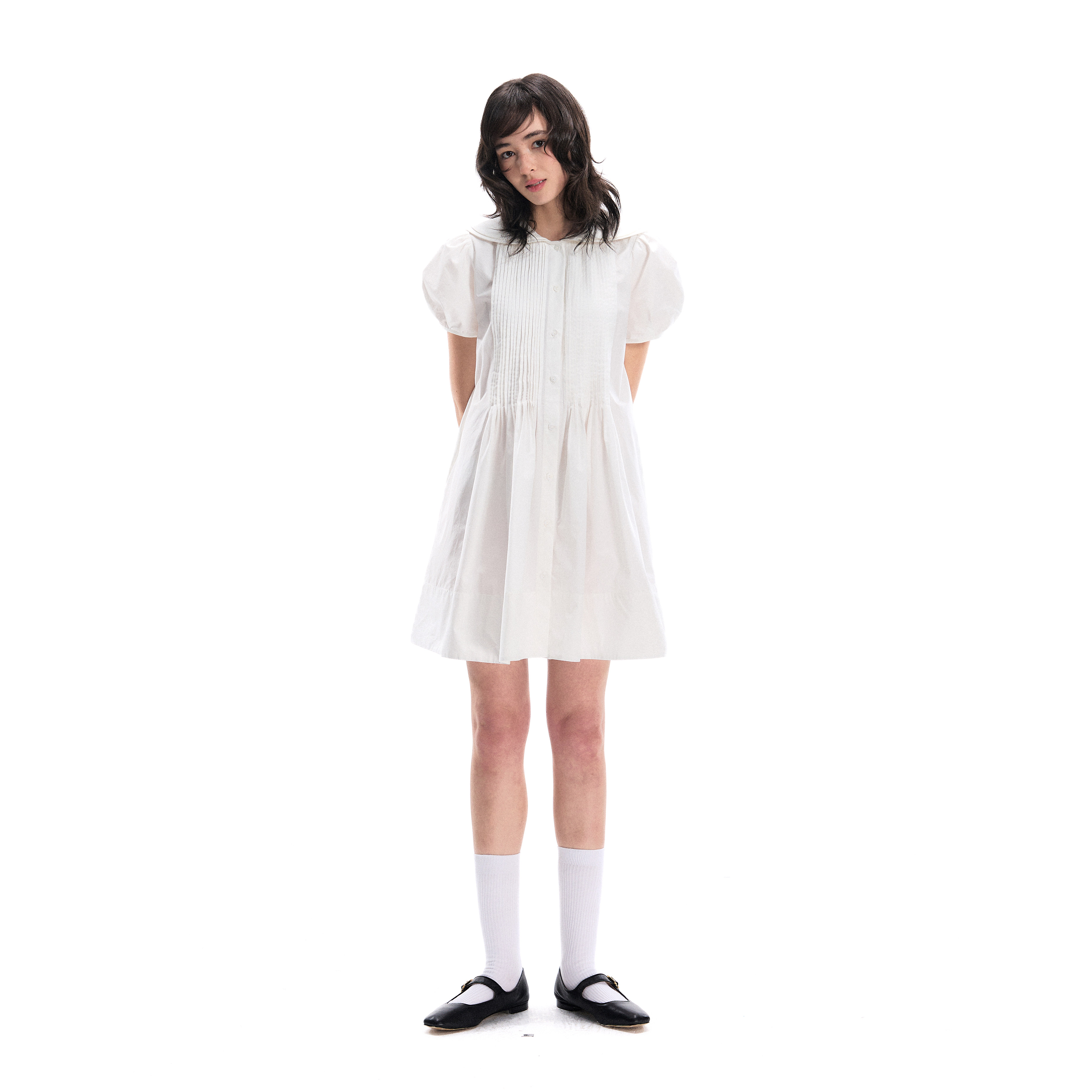 裙宽松泡泡袖 塔克褶A字减龄娃娃领衬衫 连衣裙 nanci Romance