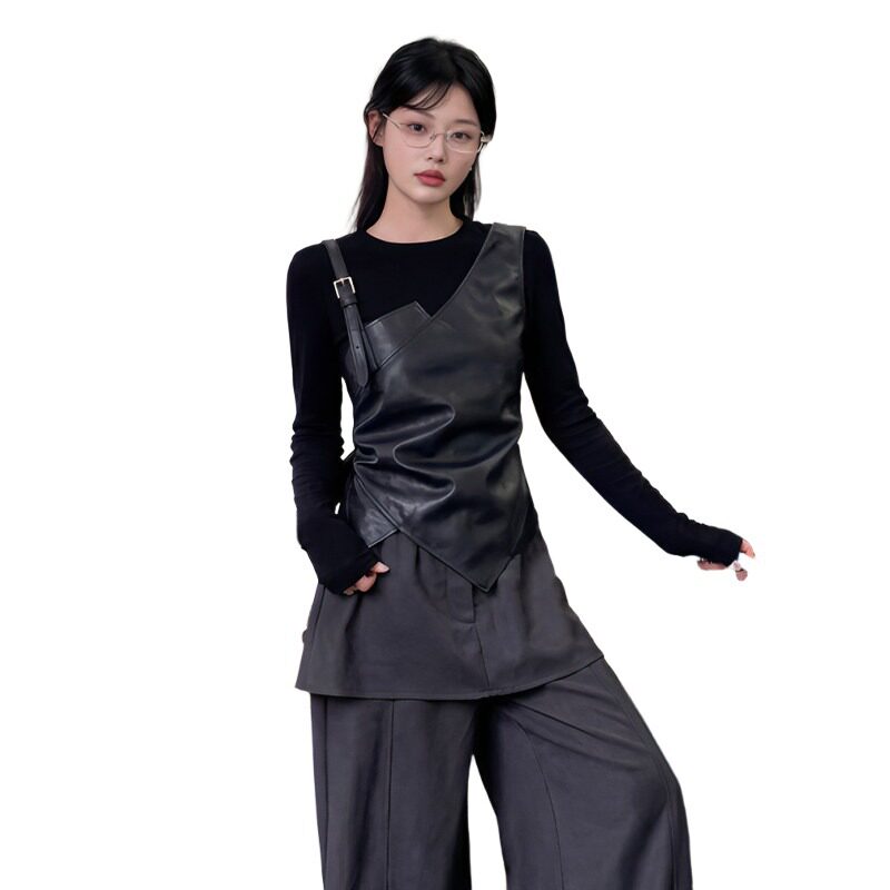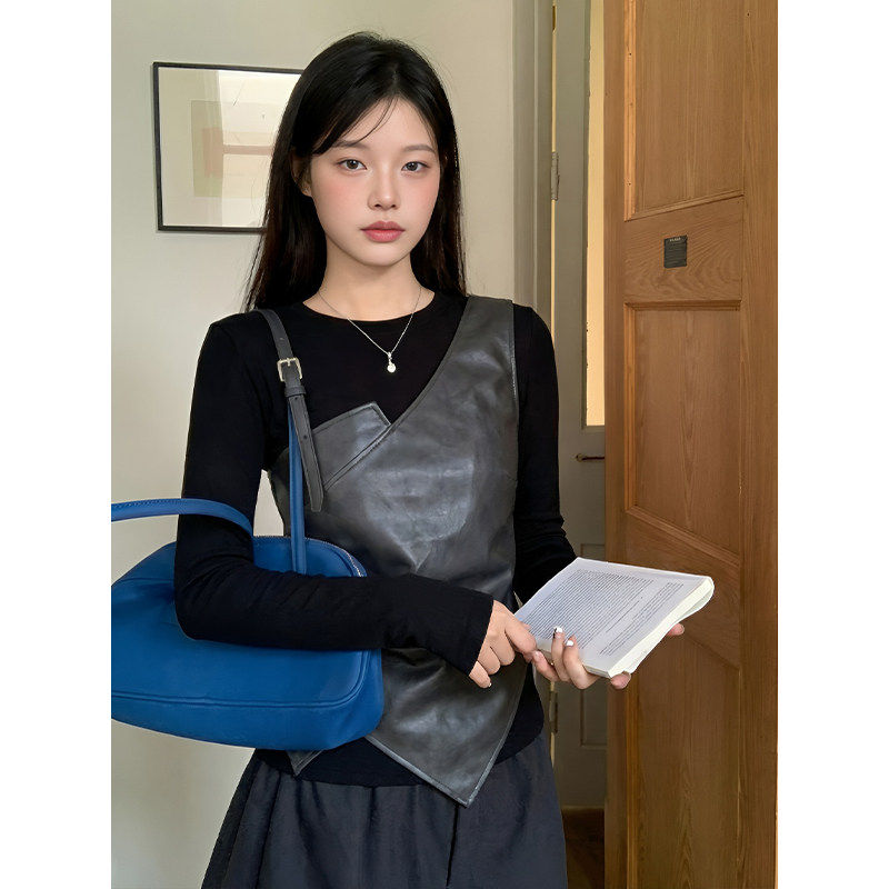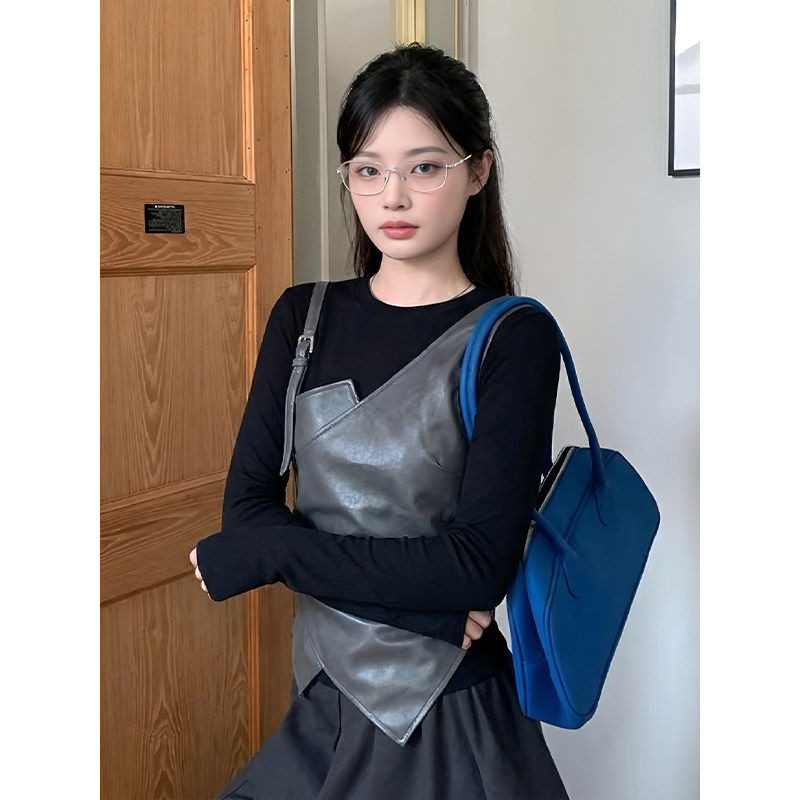 显瘦修身 T恤女早春季 气质打底上衣潮 胖MM黑色假两件掐腰长袖 大码