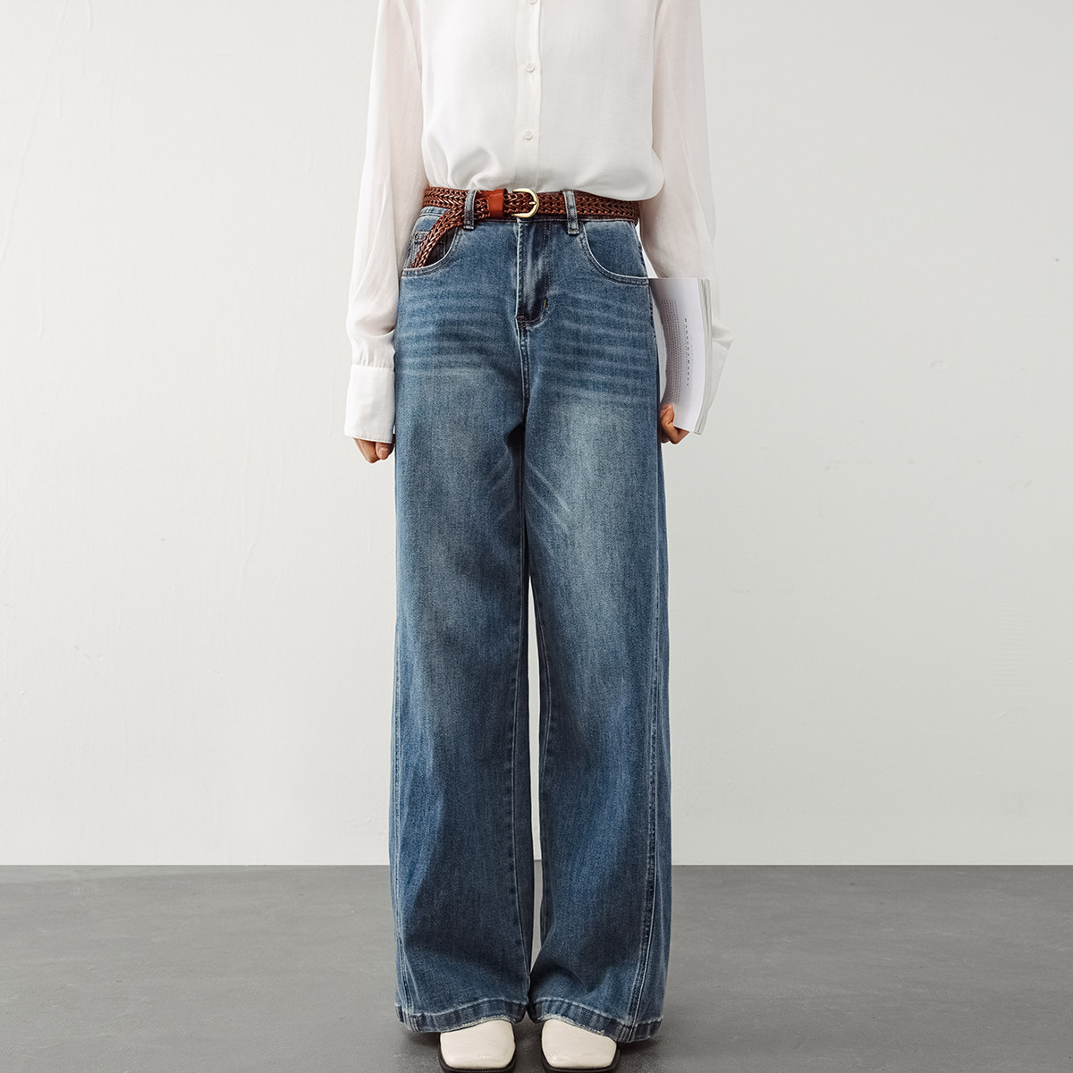气质高挑御姐范宽脚拖地牛仔裤 春装 731 兰 439西湖阁老