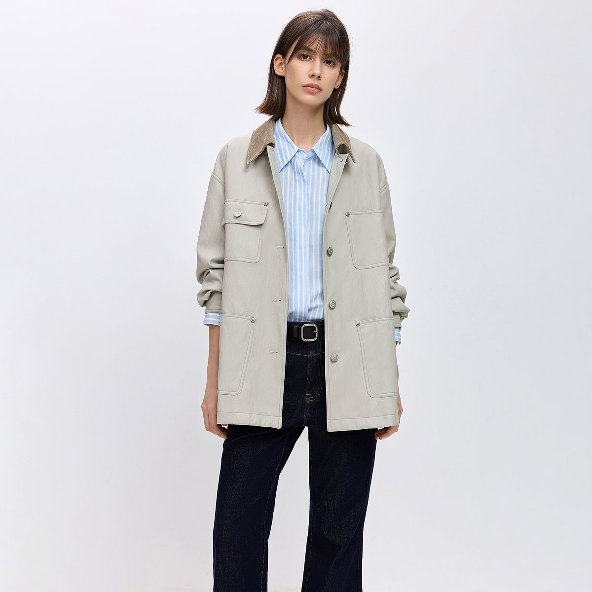 夹克外套 复古翻领宽松休闲多口袋通勤百搭工装 LILY2026春新款 女装