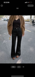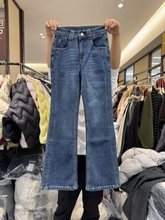 子 显瘦裤 橘子树在哪儿高腰四面弹微喇牛仔裤 女秋冬设计感直筒修身