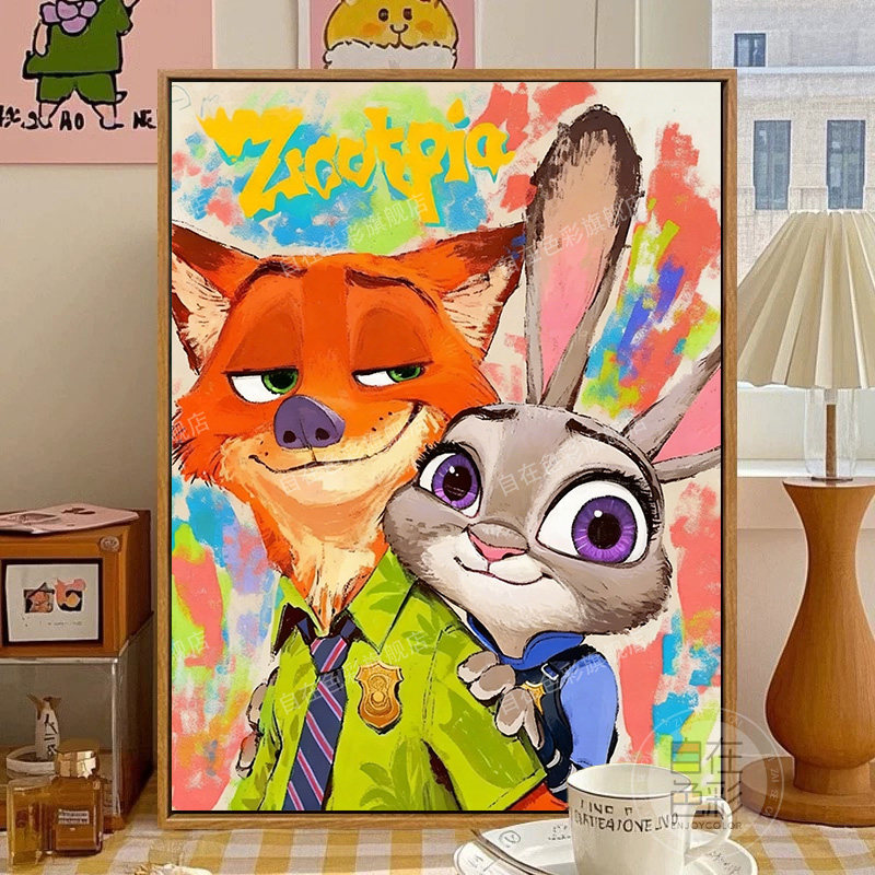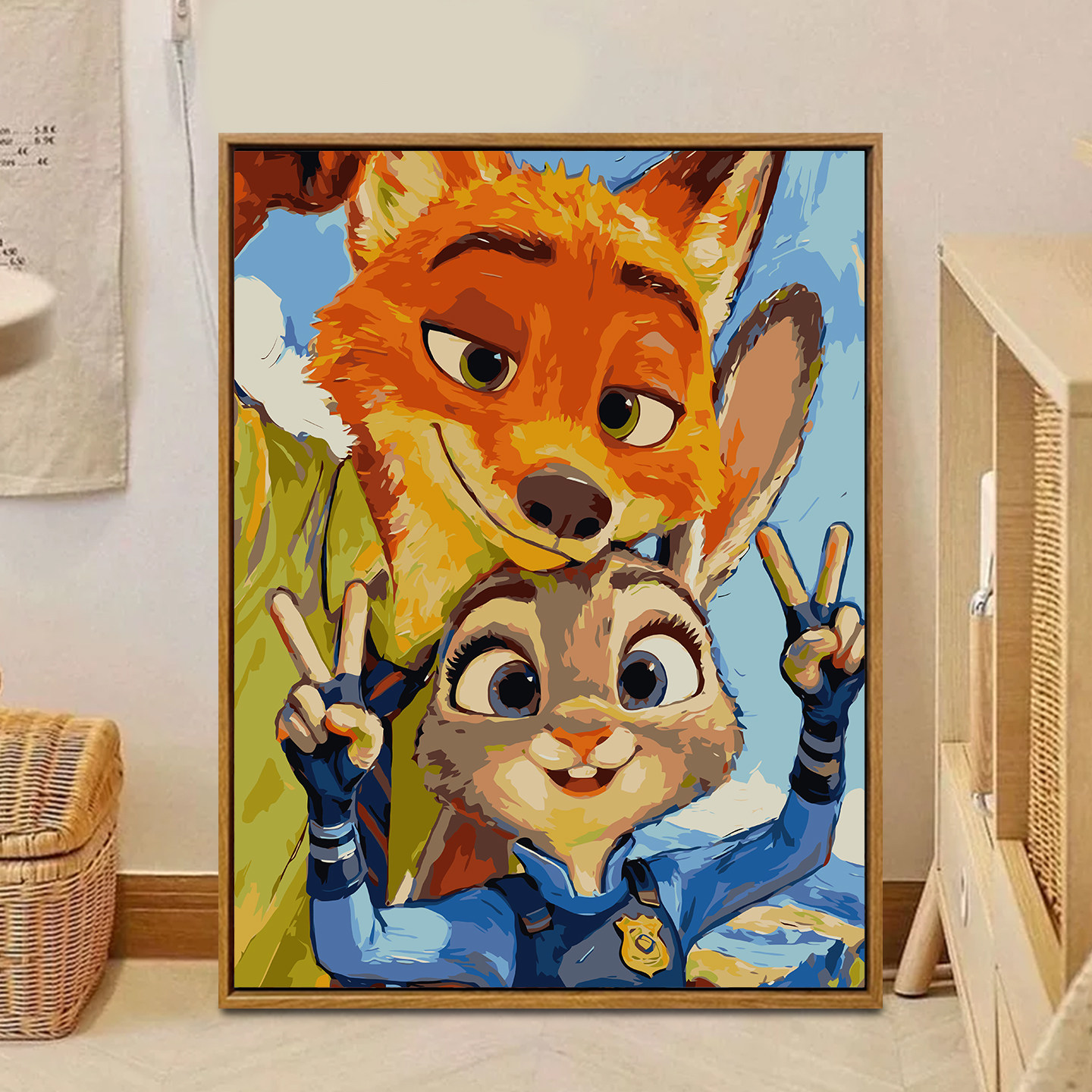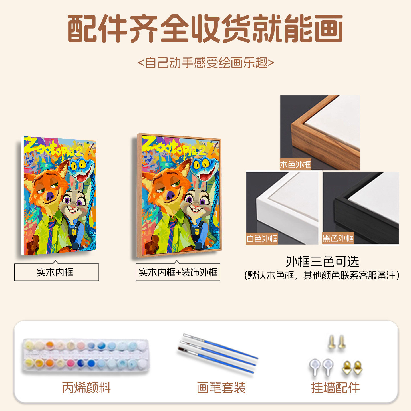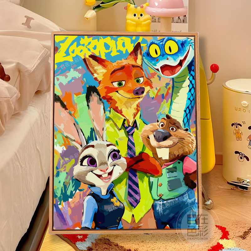 疯狂动物城2数字油画手工diy朱迪狐尼克盖瑞蛇填充涂色画画周边画