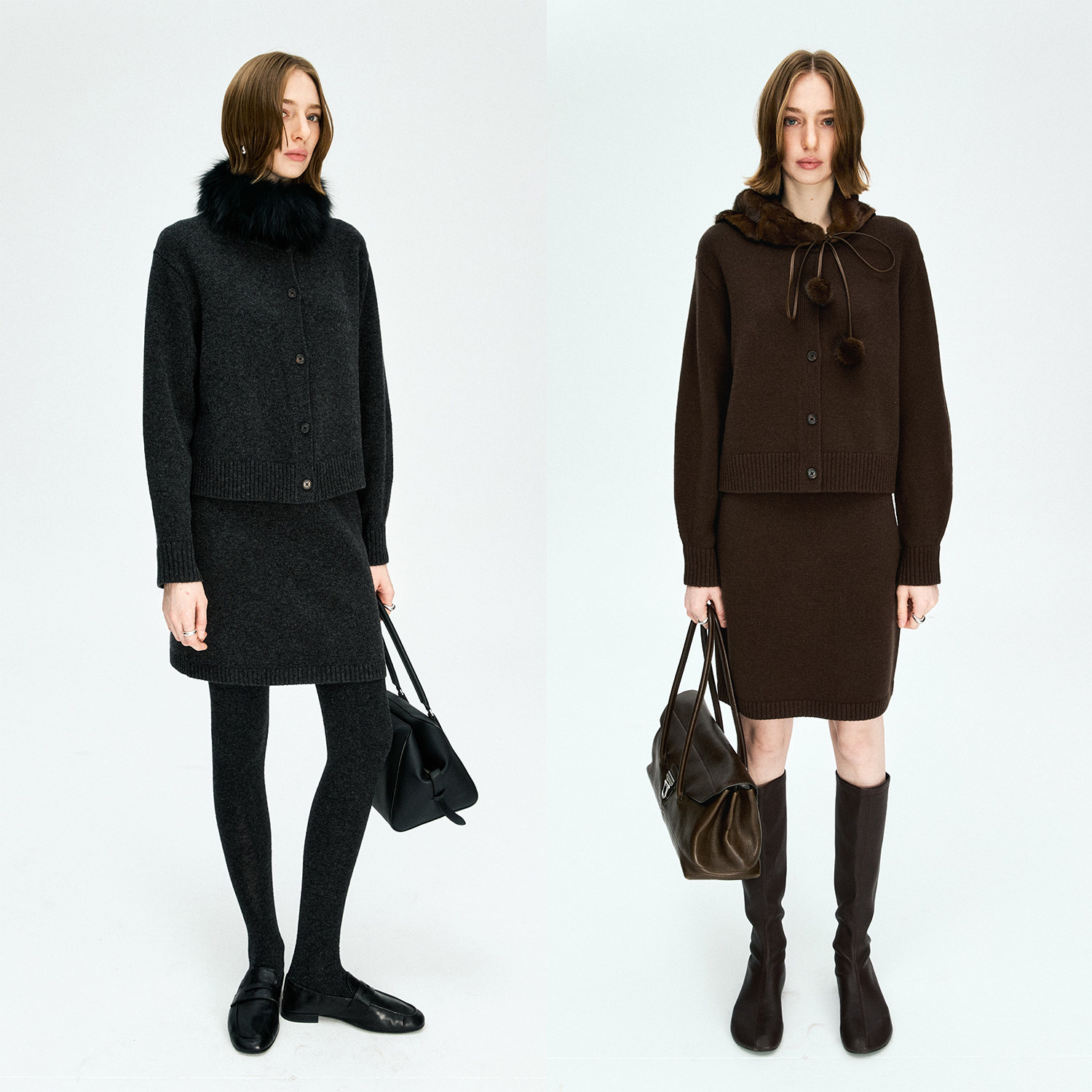 Studios 半裙套装 简约利落 针织开衫 澳洲美利奴全羊毛短款 MRS