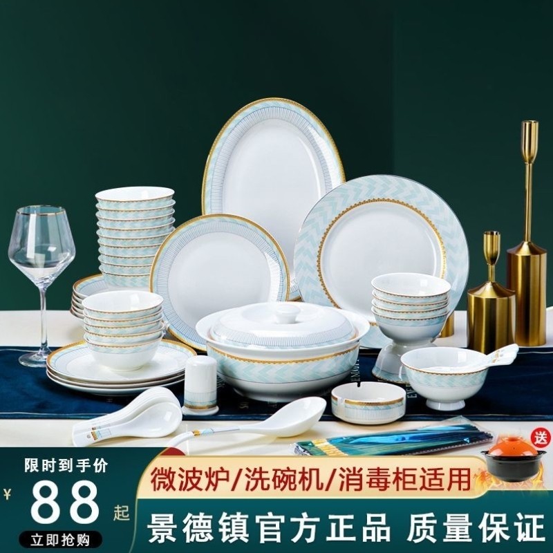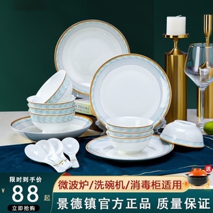 家用泡面汤碗盘子组合吃饭中式 18头碗碟套装 4人碗筷餐具 新款 特价