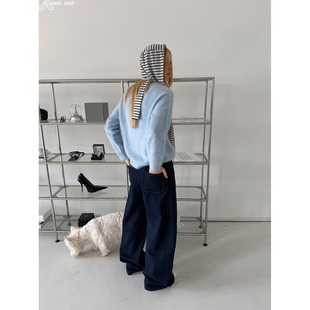 加绒弯刀深蓝牛仔裤 Rockrio Rarelicold
