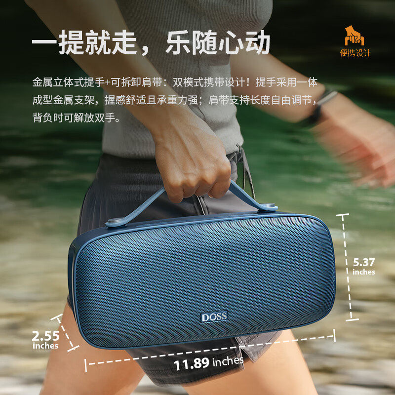 DOSS德士D300蓝牙音箱户外广场舞移动便携长续航防水露营手提音响