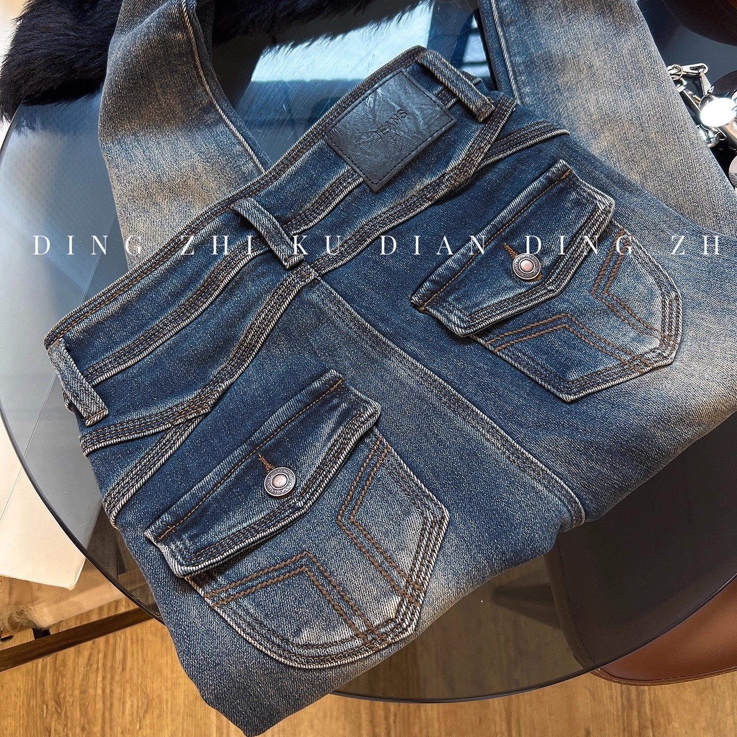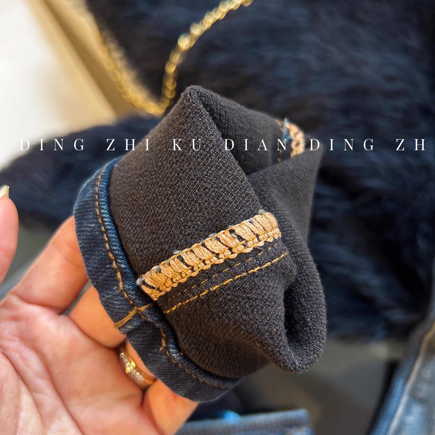 显瘦翻盖铅笔裤 提臀显瘦 修身 女秋冬加绒新款 紧身高腰小脚牛仔裤