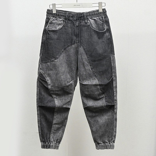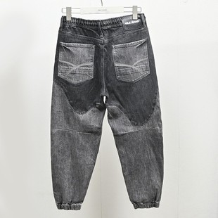 男春秋潮牌宽松直筒阔腿长裤 花朵刺绣牛仔裤 300斤国潮美式 特大码