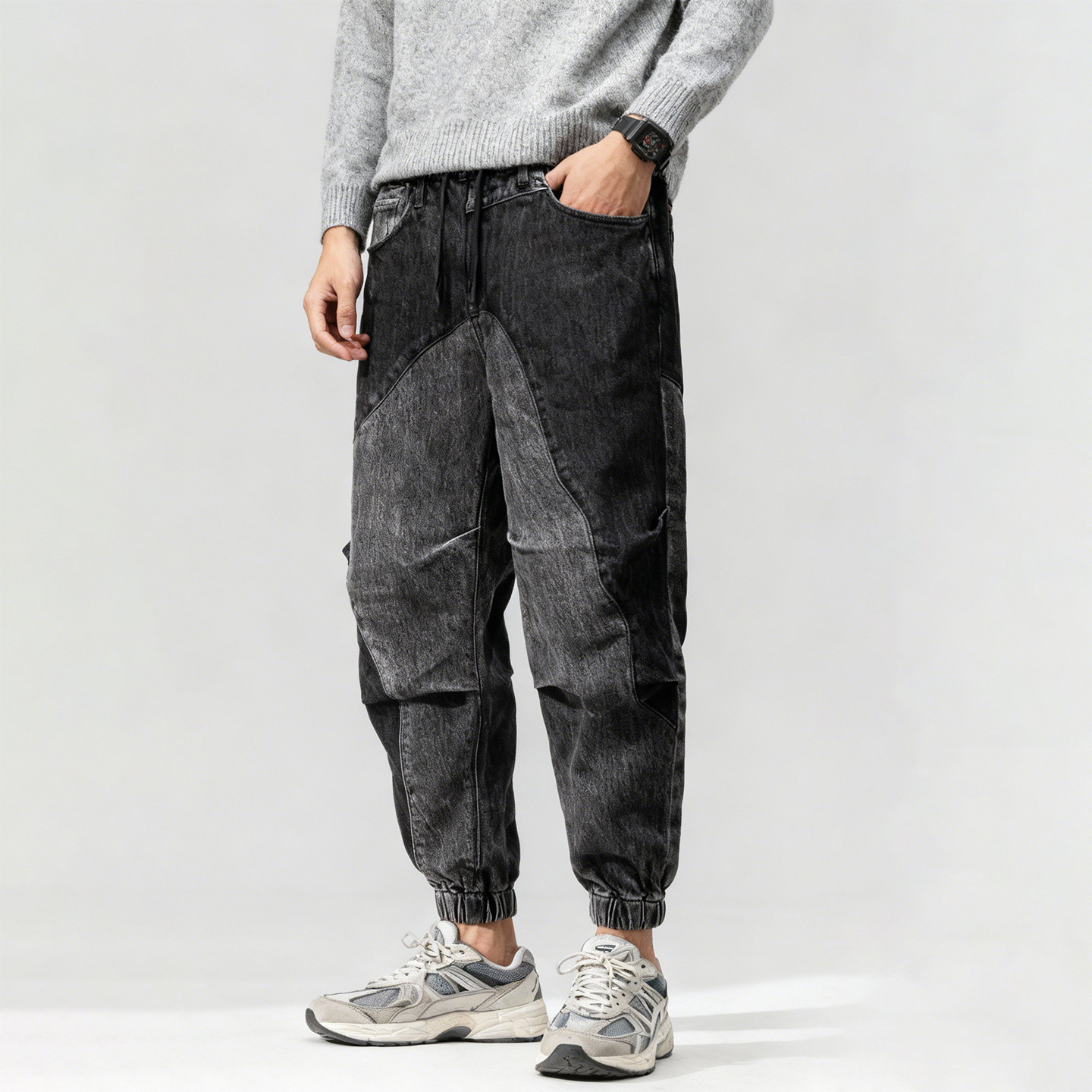 男直筒宽松百搭锥形阔腿裤 休闲复古重磅加绒牛仔裤 子潮 美式 秋冬季