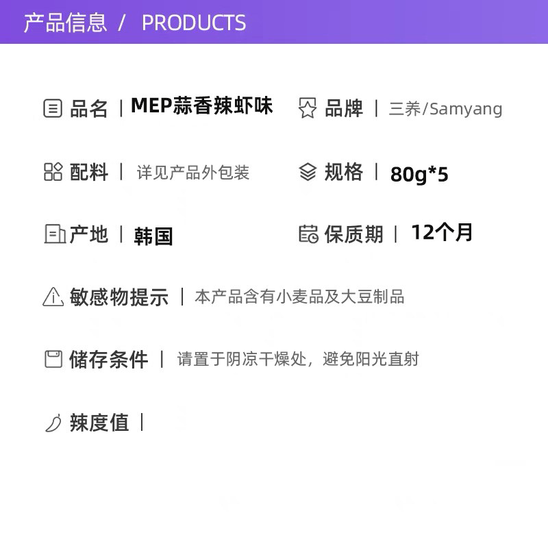 韩国进口三养MEP蒜香辣虾80g 弹谷奶油蘑菇碗面 自营